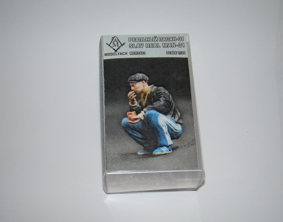 Персонаж вышел более чем узнаваем, вполне натуральная кепка-восьмиклинка (в заумном произношении "габеновка", от Жана Габена), аналогичные кроссы отечественного производства и я носил в школе, кроссы немного топорщаться спереди, у меня по ощущениям был более плоский нос. Вообще у модели очень забавно сделаны литники, руки без каких-либо повреждений спокойно были со щелчком отломлены от питателя, осталось лишь зачистить надфилем маленькуй пенечек.