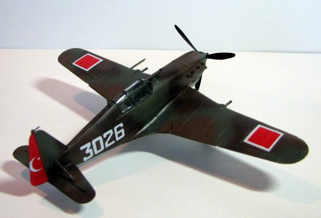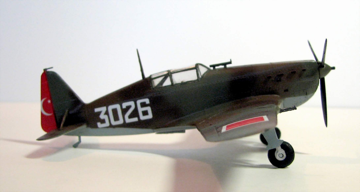 Одна из моих первых авиакошек, собранная около года назад в порядке тренировки и пробы аэрографа. Изображает машину Турецких ВВС, примерно 1940-42гг. Без каких-либо доработок. Окраска - акрил Тамия.