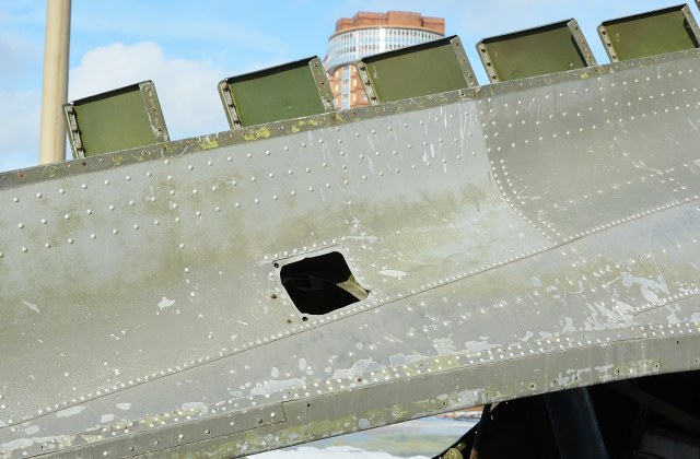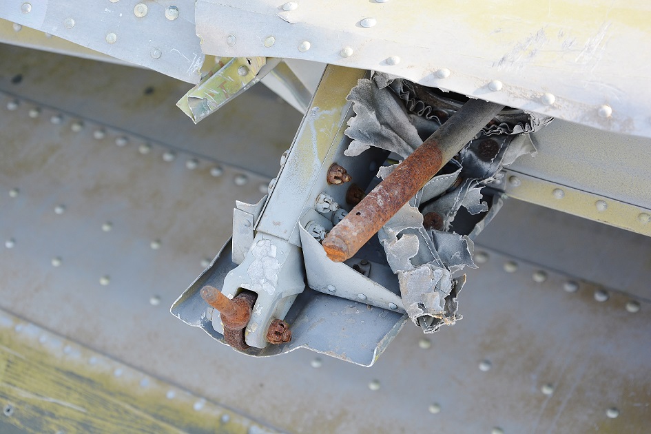 Всем известно, что американские самолеты строились из сплава АЛКЛАД (ALCLAD-245, ALCLAD-104TS, и др.). Это практически тоже самое, что и советский"авиационно-космический" сплав (дюраль) Д-16Т. Но! Американы это ведь американы! Название АЛКЛАД является фирменным, патентованным. Так что вся номенклатура изделий (листы, профиля, трубы и др) выходя из проката маркируются. Вот идет лист через прокатные валики, а на завершающем этапе стоят типографские станки которые печатают с обеих сторон фирменные "лейбы". Сейчас подобное делается, например, на пленке Оракал или на алюминиевых панелях для декоративных фасадов. Посмотрите, какая крепкая эта краска! Поверхности оголились до дюраля, а "лейбические" надписи до сих пор видны!