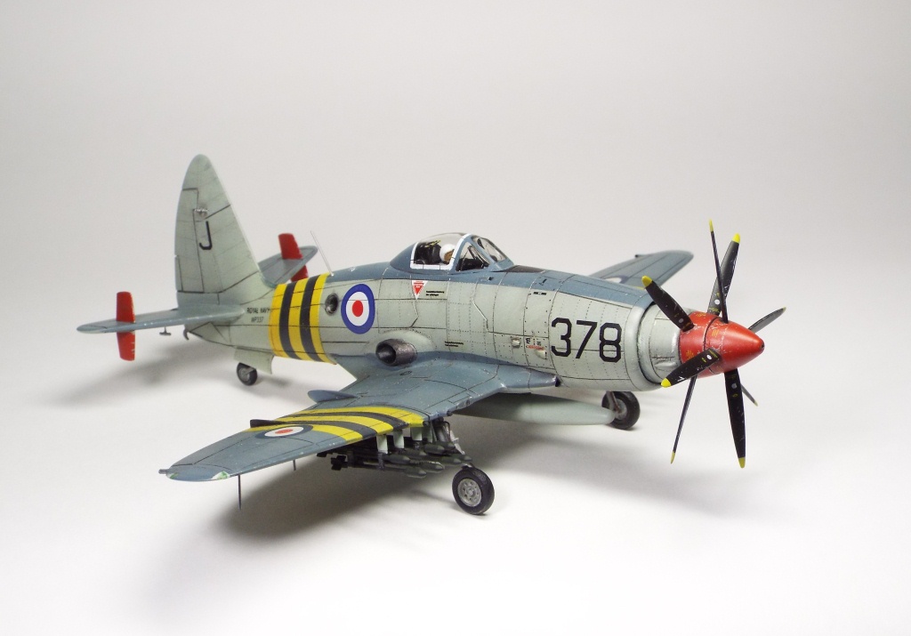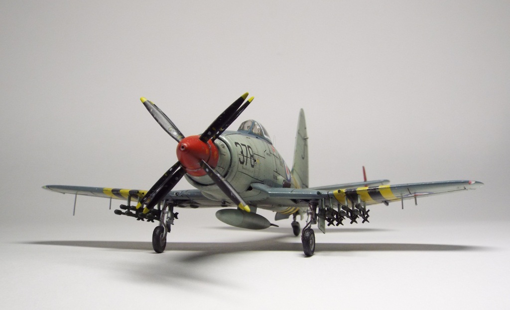 Ну о модели можно сказать следующие-набор прост,но не фантазийный.Не знаю как по копийности в сравнении с чертежами (да и есть ли они хорошие на этот самолёт),но в сравнении с красивым трумпетером довольно копийно повторяет его образ.Да,в деталировке трубач более привлекателен и разнообразен.Это и послужило плюсом в даном случае и были взяты от туда сопла (да бы не ждать от квикбуста),ракеты и декаль.Бак достался от F-104 Starfighter.Хотя в 1/48 Трумпетер даёт его.Колёса были похожи на оригинал,за исключением протектора,но на одном был литьевой брак и пришлось заменить от BAC Lightning от того же ФРОГа.Правда диски впалые,но других под рукой небыло.Протектор на них надавил по рефлёной ручке на ноже.В комплекте отсутствовал дутик и я принял решение заменить его передней стойкой и пневматиком от звездинского МИГ-21.В общем весь процесс можно просмотреть,при желании,тут.