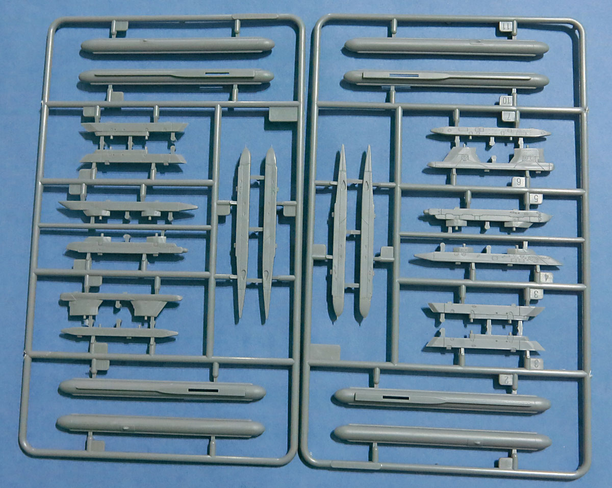 Два небольших, одинаковых литника с деталями пилонов под вооружение.