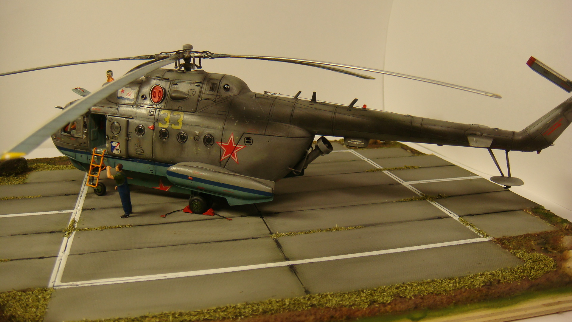 Добрый день, Андрей. Мне лично понравилась работа. Есть небольшие огрехи в окраске, но у кого их нет. Ми-14, довольно редкий гость на нашем ресурсе. Смолу от "Армори" в руках держал, но купить в свое время не решился, т.к. не был уверен в том, что осилю сие действо. Вы смогли!