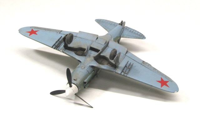 3) Ужасность Трампитеровской имитации полотняной обшивки рулей высоты и поворота Вы, к сожалению, черной смывкой только подчеркнули (задуйте почти прозрачным базовым цветом эти места - это приглушит смывку). Я, когда строил Трампитеровский МиГ, почти полностью зашкурил эти места - мне почти ровная поверхность показалась красивее.