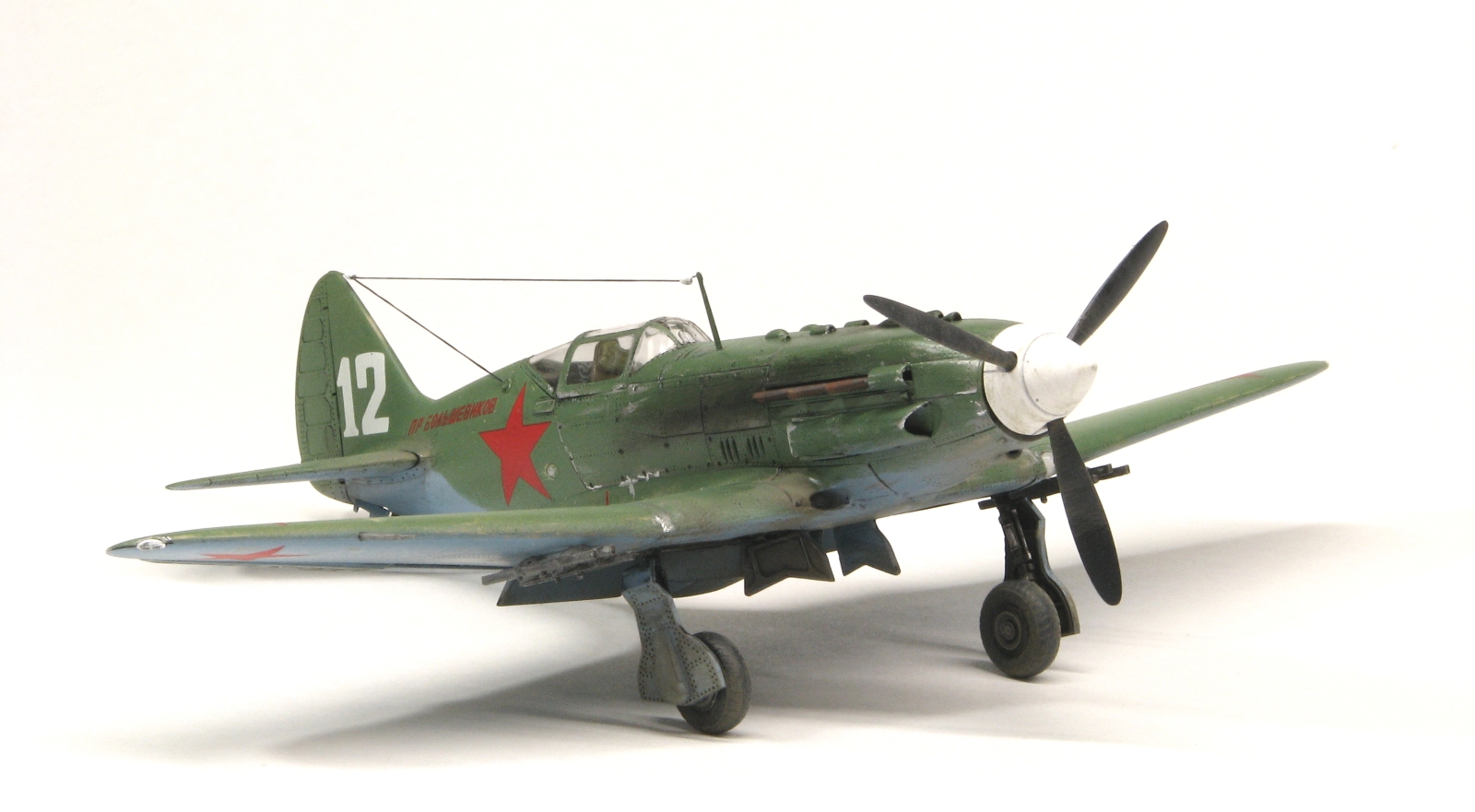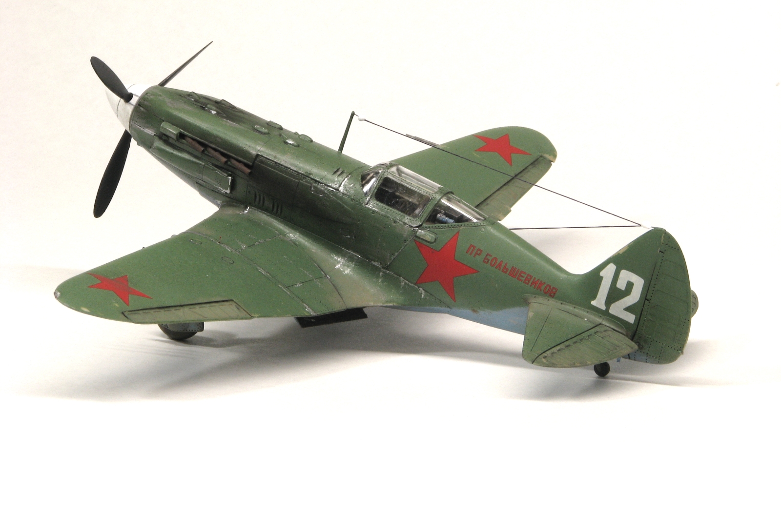 Приветствую, коллеги. Окинув взором полку с моделями, заметил, что не хватает моделей с красными звездами. Для исправления баланса был вы выбран МиГ-3 ранней производственной серии в исполнении Trumpeter. К сожалению, не все задуманное получилось. Возможно, это изделие должно было попасть в "бред воспаленного сознания" из- за декали, которая больше подходит маршрутке, а не боевому самолету. Однако, остальные косяки (например, провисший трос с аляповатыми изоляторами, криво приклеенная фара и еще пяток менее очевидных) надежно фиксируют модель в песочнице. Надеюсь, следующий раз получится лучше.