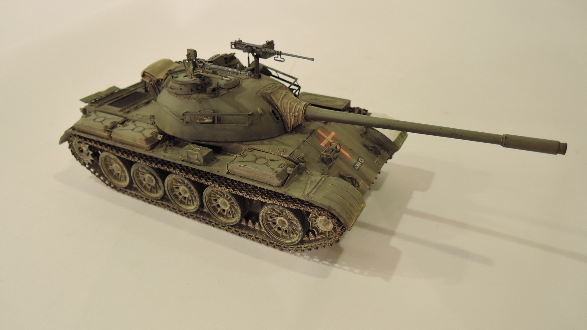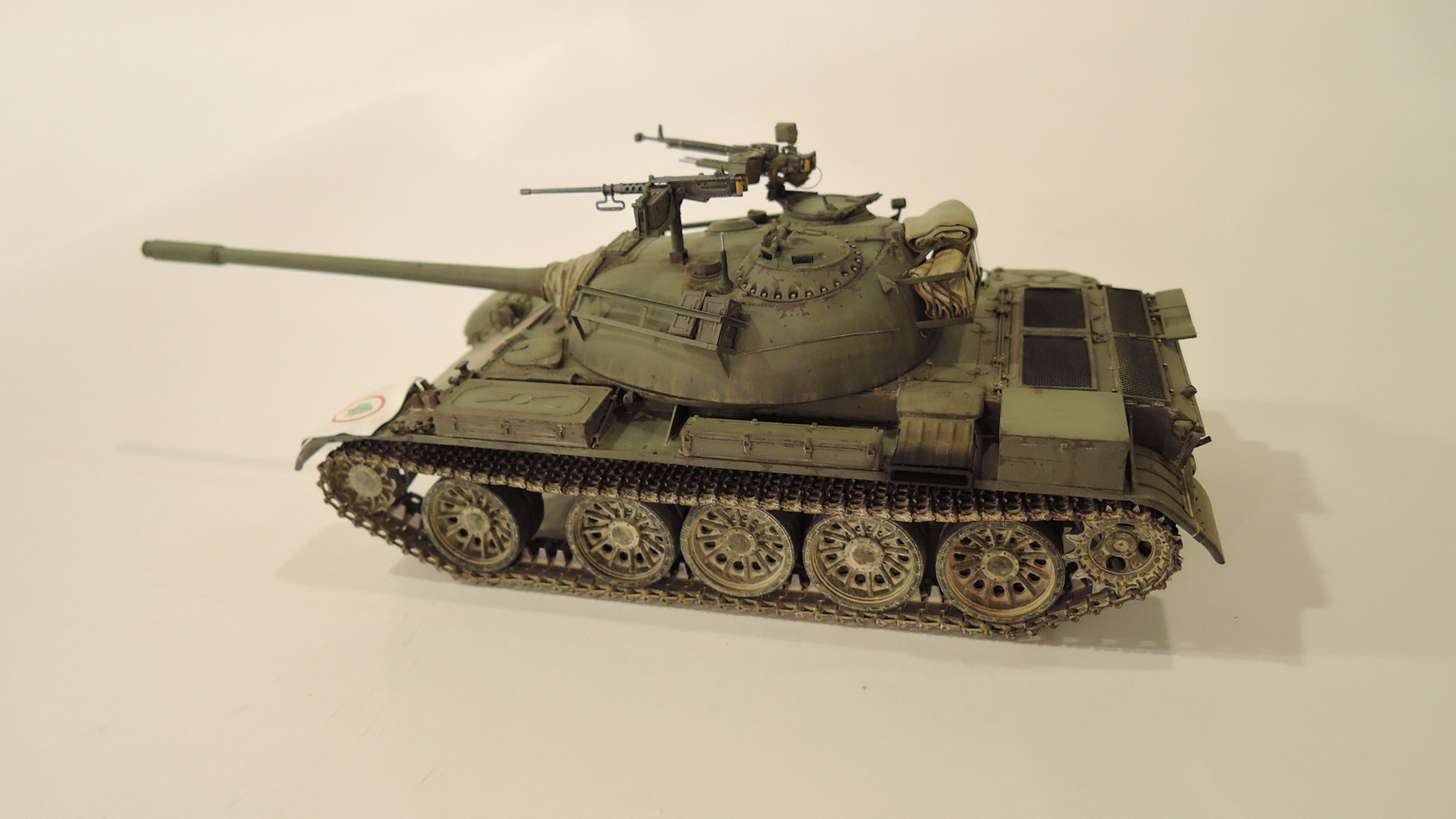 Класс! Очень интересный вариант Т-54 в контексте той войны. Запил Тамии очень зачётный. Браунинг на башне придаёт и без того брутальному танку, особый шарм! Очень понравилась работа.