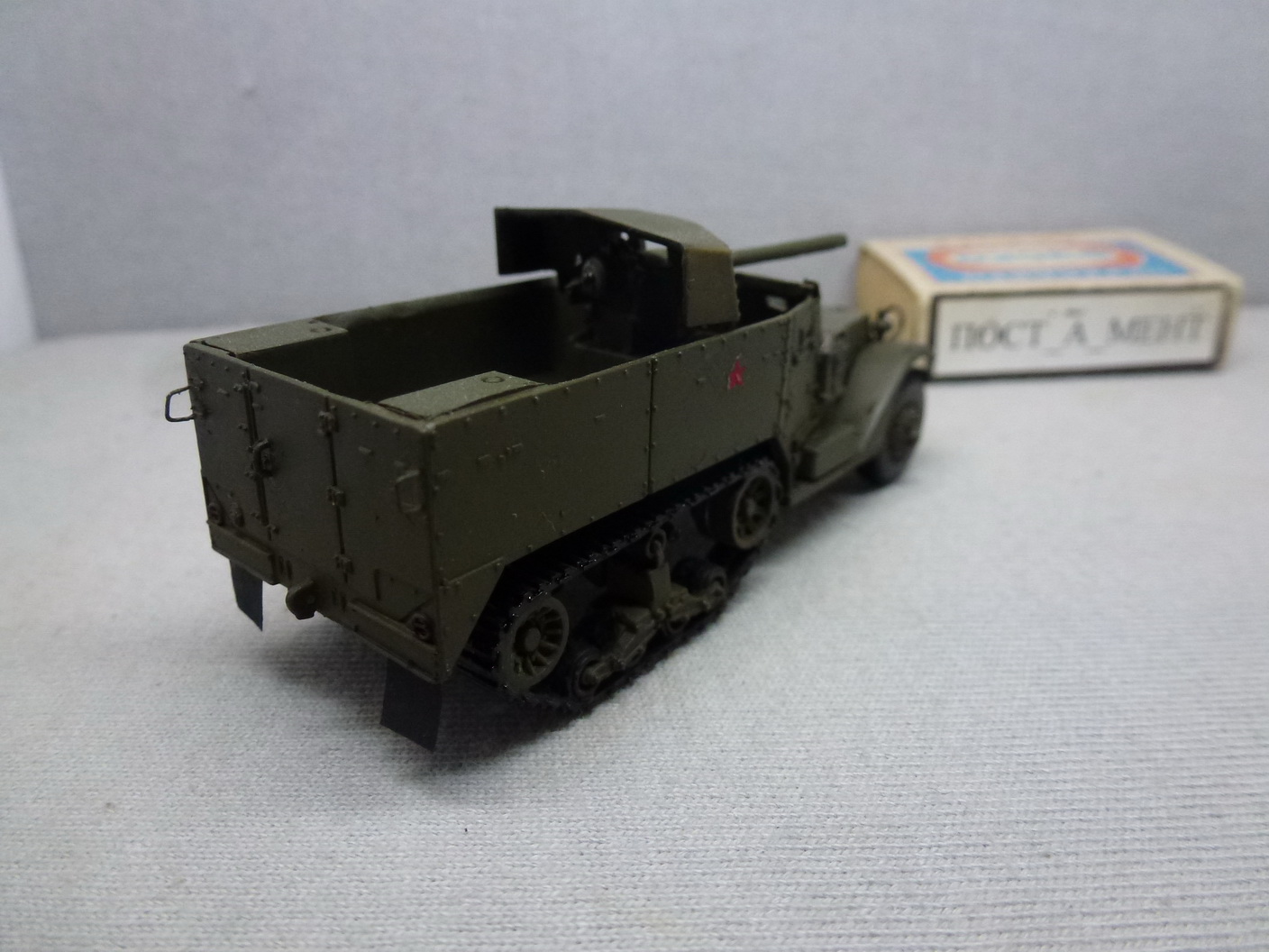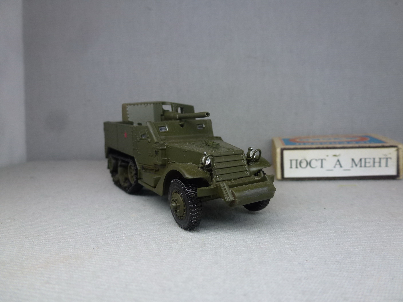 Модель представляет быстросборку, но легкой прогулки не получилось....В ходовой пришлось пропиливать, чтобы разделить катки. Все грани пришлось стачивать. Особая песня - орудие....Ствол пришлось делать самому?!(выглядит задранным к верху - сломать боюсь)...на М3 он был другой формы и 75мм, а здесь 57мм. В щите пропилил окно(в МЗ щель), установил прицел, оптику....поцарапал в местах, где экипажа больше всего....