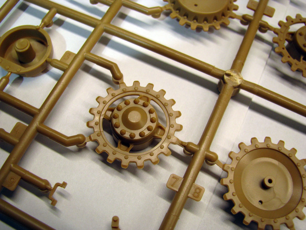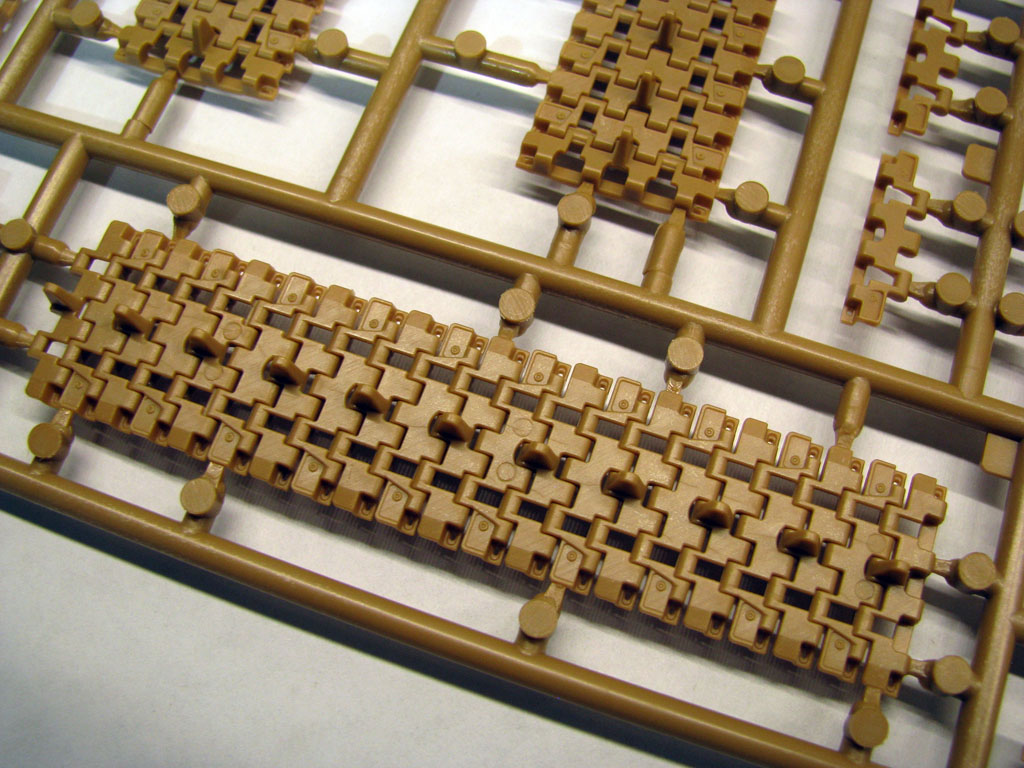 Гусеницы полунаборные, отлиты превосходно, толкателей минимум, причем похоже на собранной модели их должны закрыть катки.
