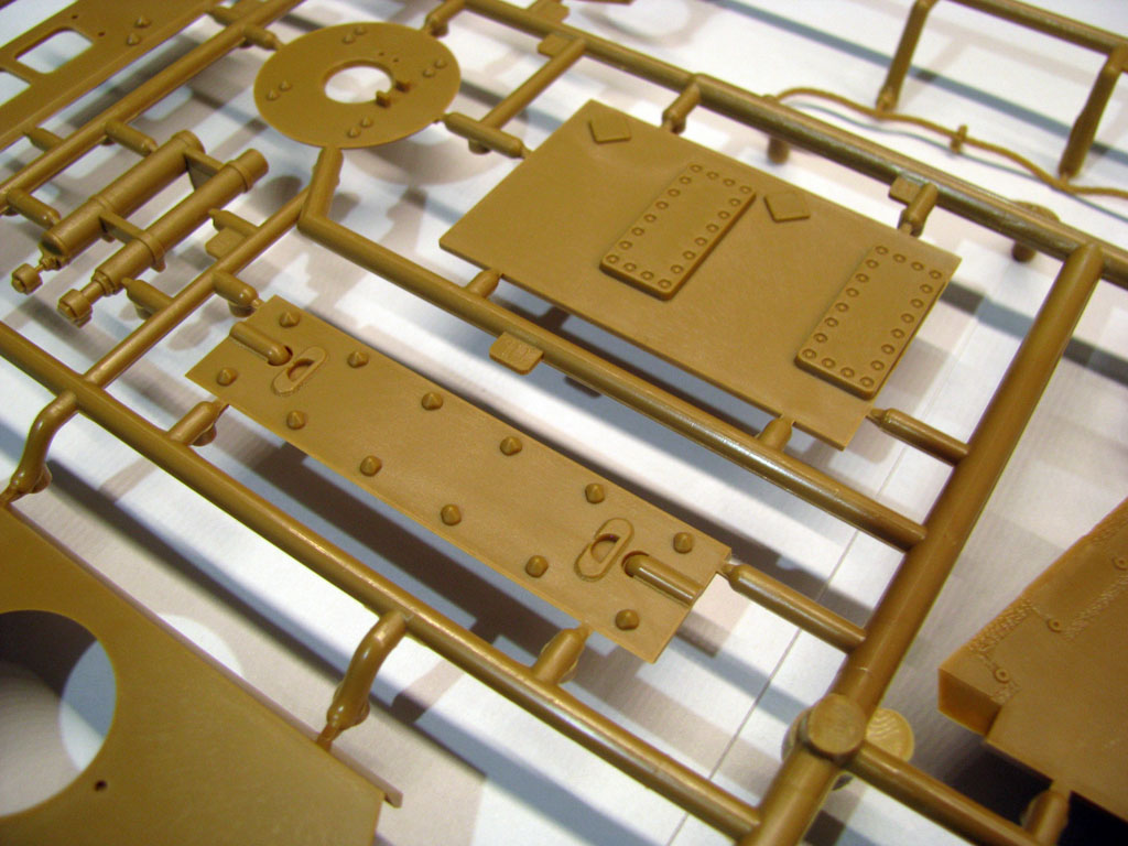 Литье очень качественное, утяжины я нашел только в одном месте, на надгусеничных полках, но их закроет борт корпуса. Видимая часть их как и положена покрыта очень ажурным рельефом.