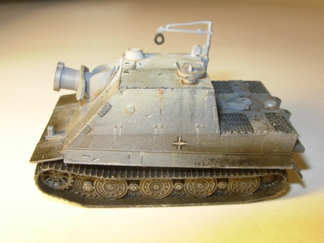 «Штурмпанцер VI»— немецкая самоходная артиллерийская установка периода Второй мировой войны,Создана в 1943 г на шасси тяжёлого танка «Тигр» и предназначалась для разрушения укреплений противника и боёв в городских условиях. Всего в 1943—1945 годах из линейных танков было переоборудовано 18 «Штурмтигров», включая прототип. Они ограниченно применялись в боях практически до самого конца войны, но из-за своего крайне малого количества, отсутствия подходящих целей, ненадёжности и проблем со снабжением, сколько-нибудь заметного влияния на ход боевых действий «Штурмтигры» не оказали.