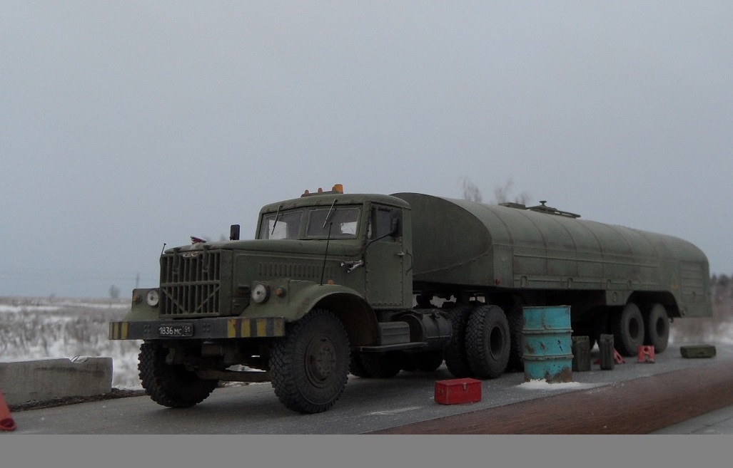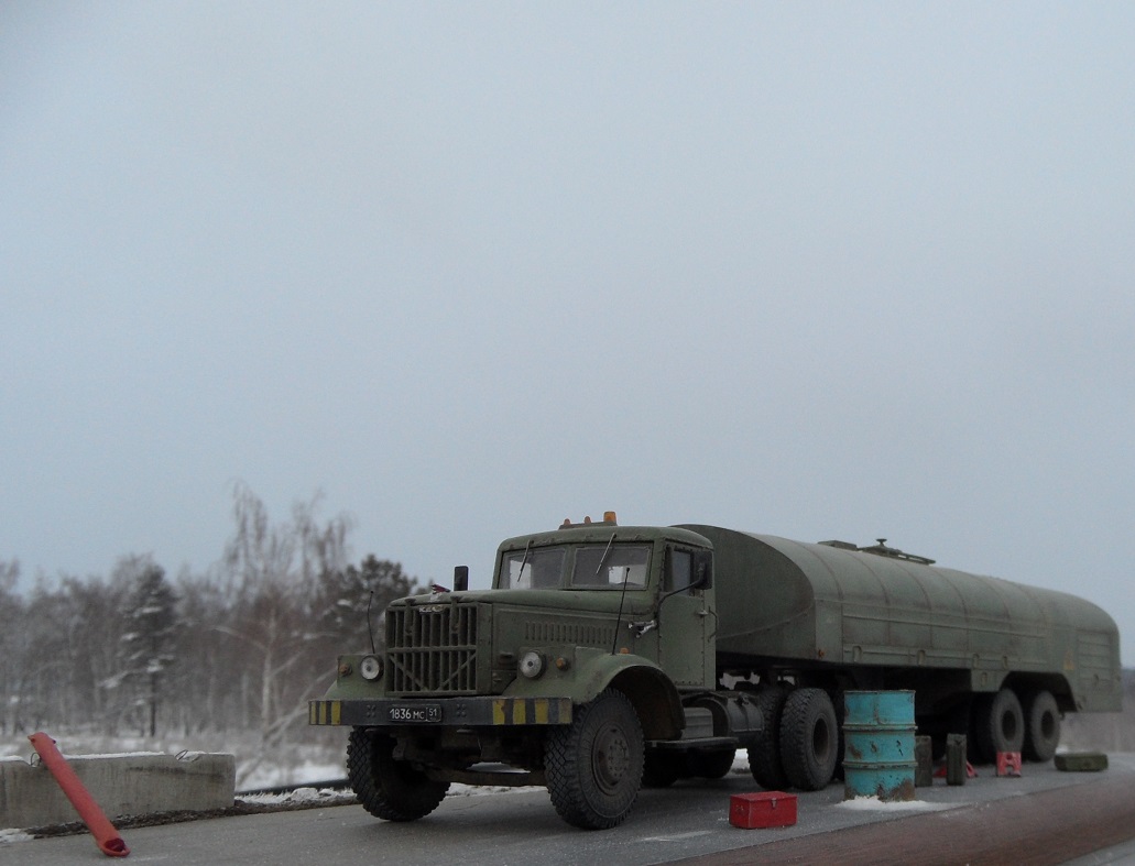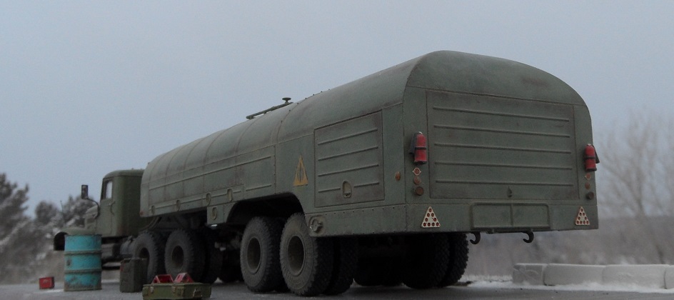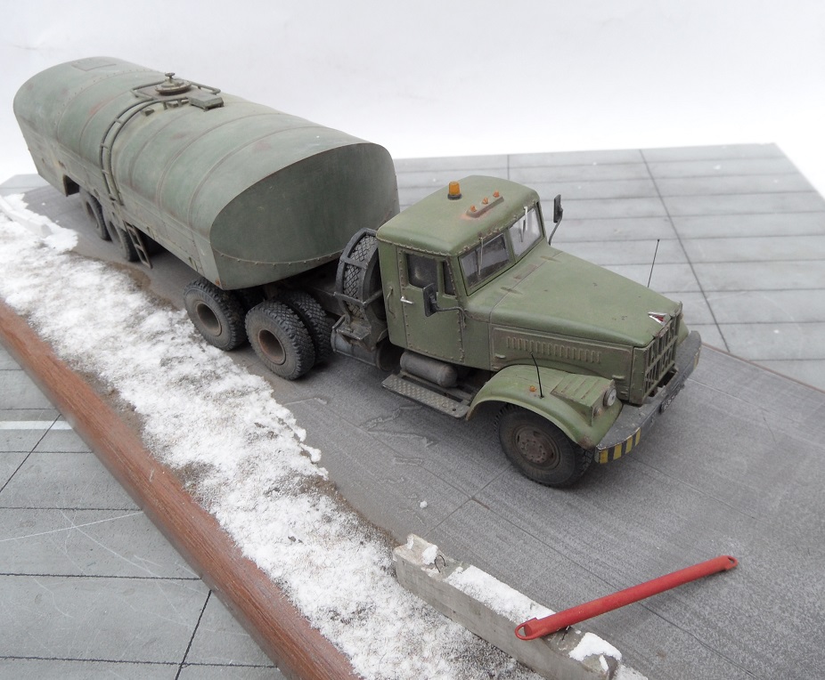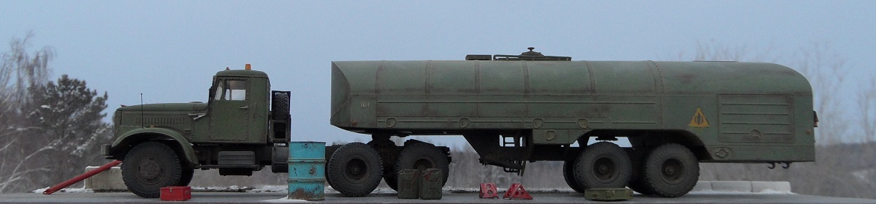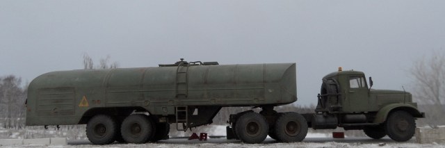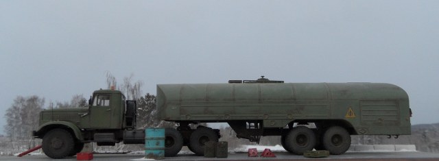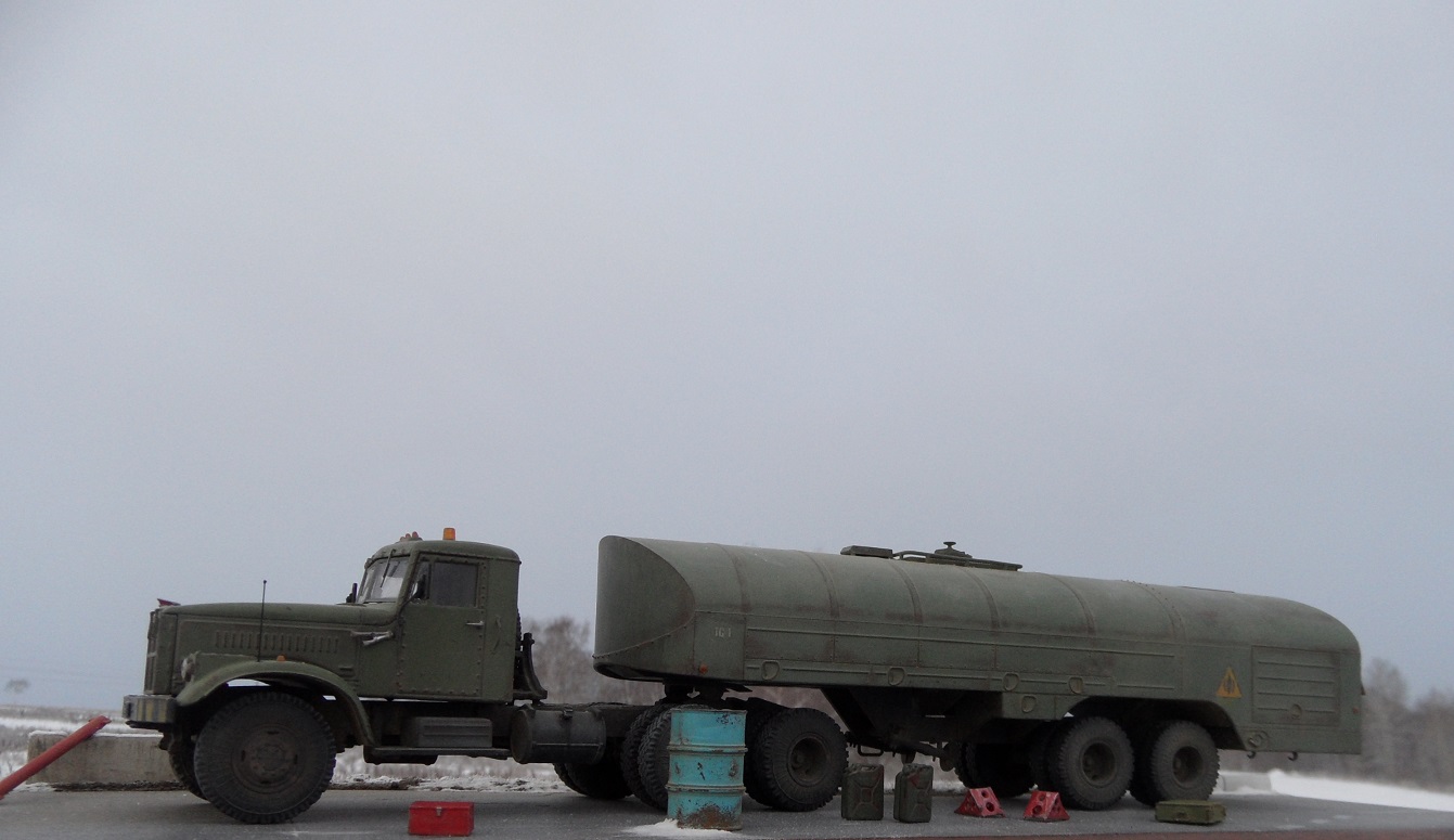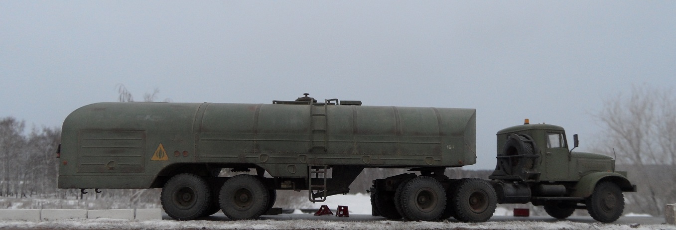 Всем привет! Удалось таки выехать отснять модели, снегопад у нас понимаеш), потому кое как отснял, качество фото неахти вышло, но перейдем к модели-Это очередная долгожданная новинка от AVD Models- ТЗ 22 Монстр на колесах, он просто огромный!. Краз тот же что и в наборе с тралом, бочка сама из пластика, рама прицепа металлическая. Сама цистерна достаточно детализирована. Модель очень интересная, можно ее поставить к самолету в 48 масштабе). Сборка не вызвала никаких проблем, впрочем по другому у данного производителя не бывает, все стыкуется идеально . Окрашивал Мотип , тонировка сухая кисть, пигменты. Приятного просмотра!