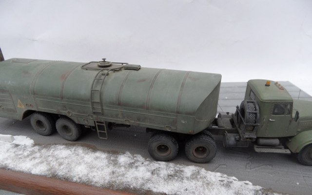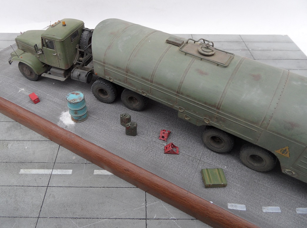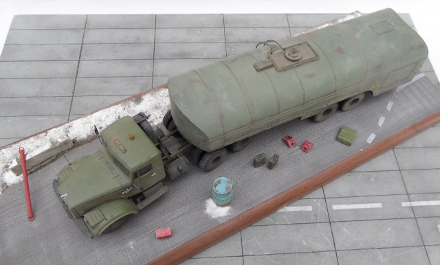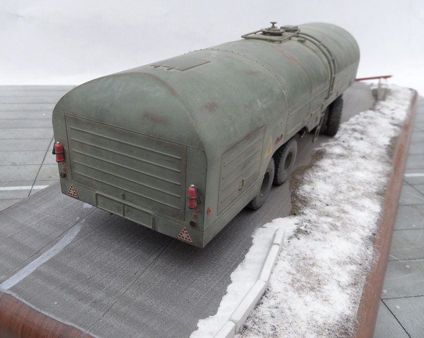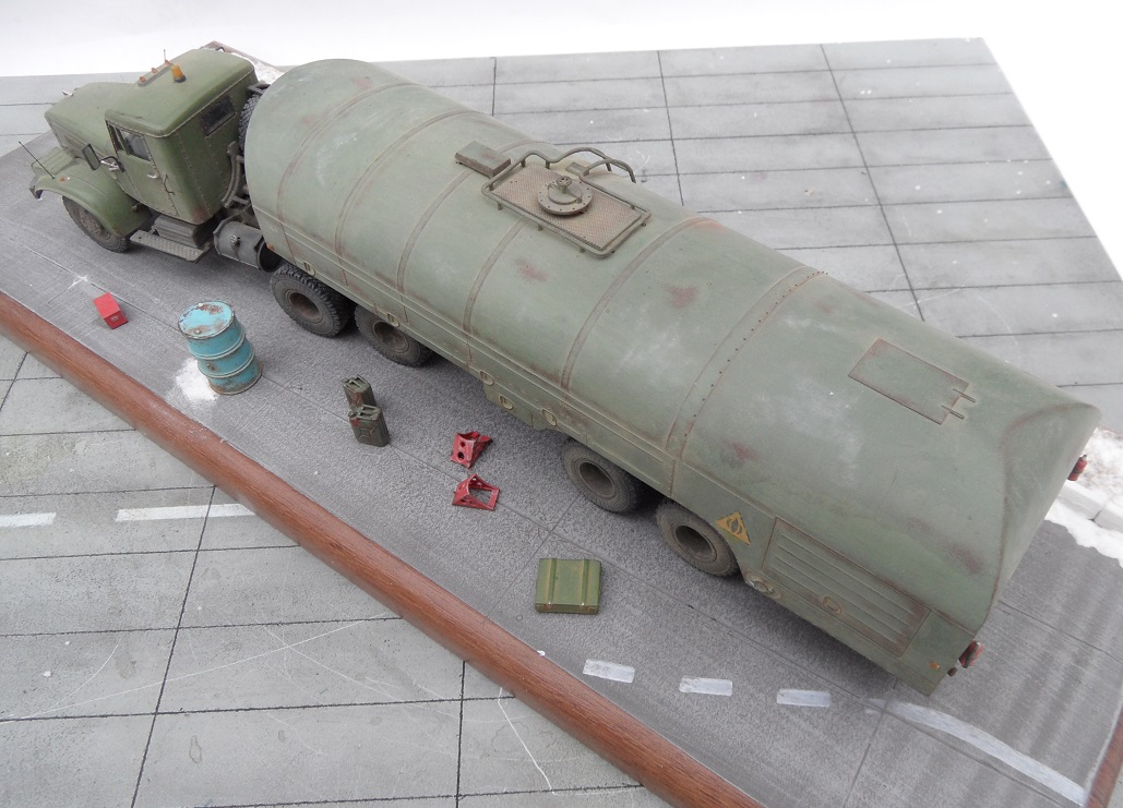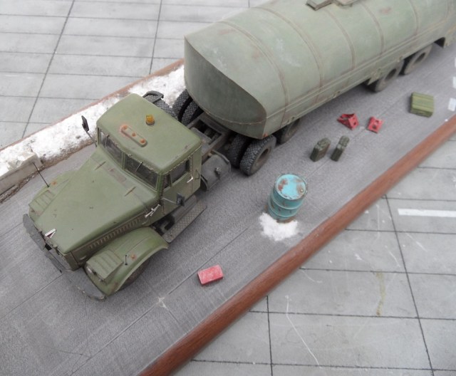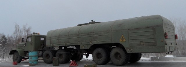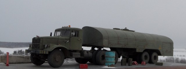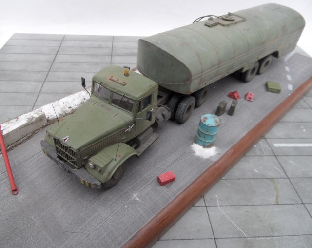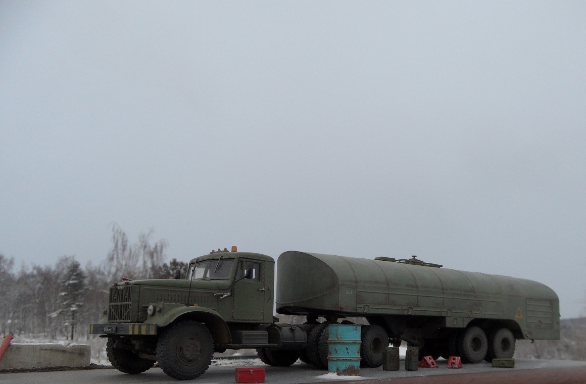 Всем привет! Удалось таки выехать отснять модели, снегопад у нас понимаеш), потому кое как отснял, качество фото неахти вышло, но перейдем к модели-Это очередная долгожданная новинка от AVD Models- ТЗ 22 Монстр на колесах, он просто огромный!. Краз тот же что и в наборе с тралом, бочка сама из пластика, рама прицепа металлическая. Сама цистерна достаточно детализирована. Модель очень интересная, можно ее поставить к самолету в 48 масштабе). Сборка не вызвала никаких проблем, впрочем по другому у данного производителя не бывает, все стыкуется идеально . Окрашивал Мотип , тонировка сухая кисть, пигменты. Приятного просмотра!