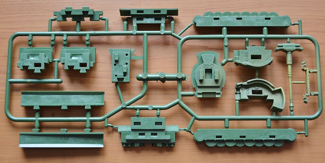 От пластика исходят миазмы, мощный химический дух! И куда только смотрит Роспотребнадзор! Наши китайские друзья продолжают травить российских детишек формальдегидами! Пластик очень твердый и какой то матовый, «бархатистый». На ощупь очень приятный. Литник с внешними деталями легко и ненавязчиво спрыснут несколькими разводами коричневой краски. По задумке производителя – это, типа, камуфляж. Обозначения элементов нанесены «чеканкой» прямо на детали, на их невидимые стороны. Для такой игрушки это весьма правильный ход. При «сборке по взрослому» со всех деталей придется удалять следы стыка половинок прессформы.