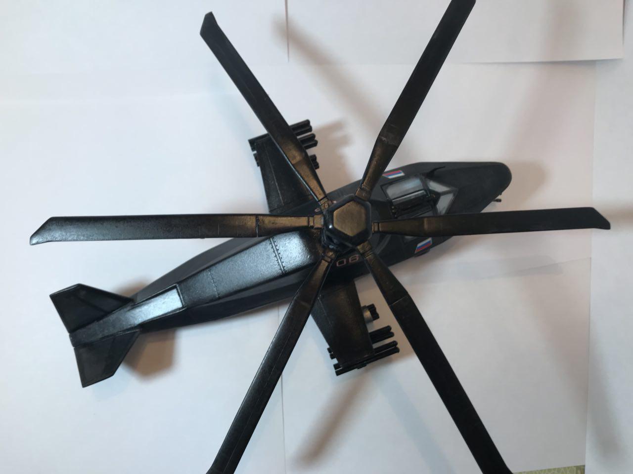 Модель фантазийная,фонарь можно сразу выкинуть было,и сделать что нибудь свое ,более эстетичное.И вообще если рассуждать.то логичнее будет .что это поколение вертолётов уже будет беспилотным.Так ,что кабину прямиком в топку)))