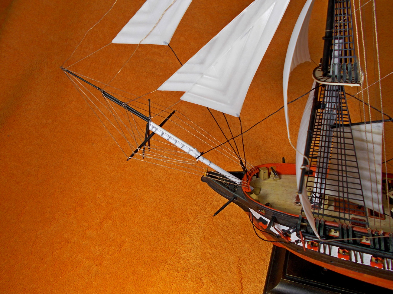 Да и не сделать нормальный такелаж с родным (пластиковым) рангоутом...