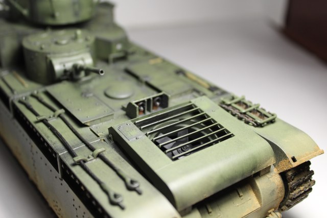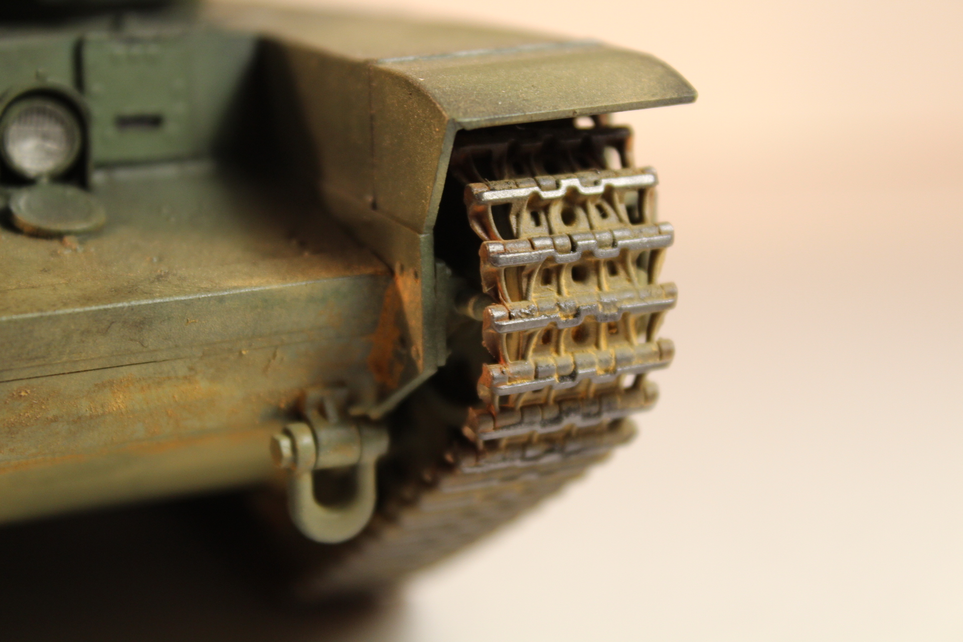 Модель получилась в целом хорошо. Правда я не много несогласен с размещением пыли и песка на танке(почему то катки абсолютно чистые, а"тележка на которой эти катки размещены запачкана?)но всё остальное выполнено на высоком уровне .Видно что автор старался.