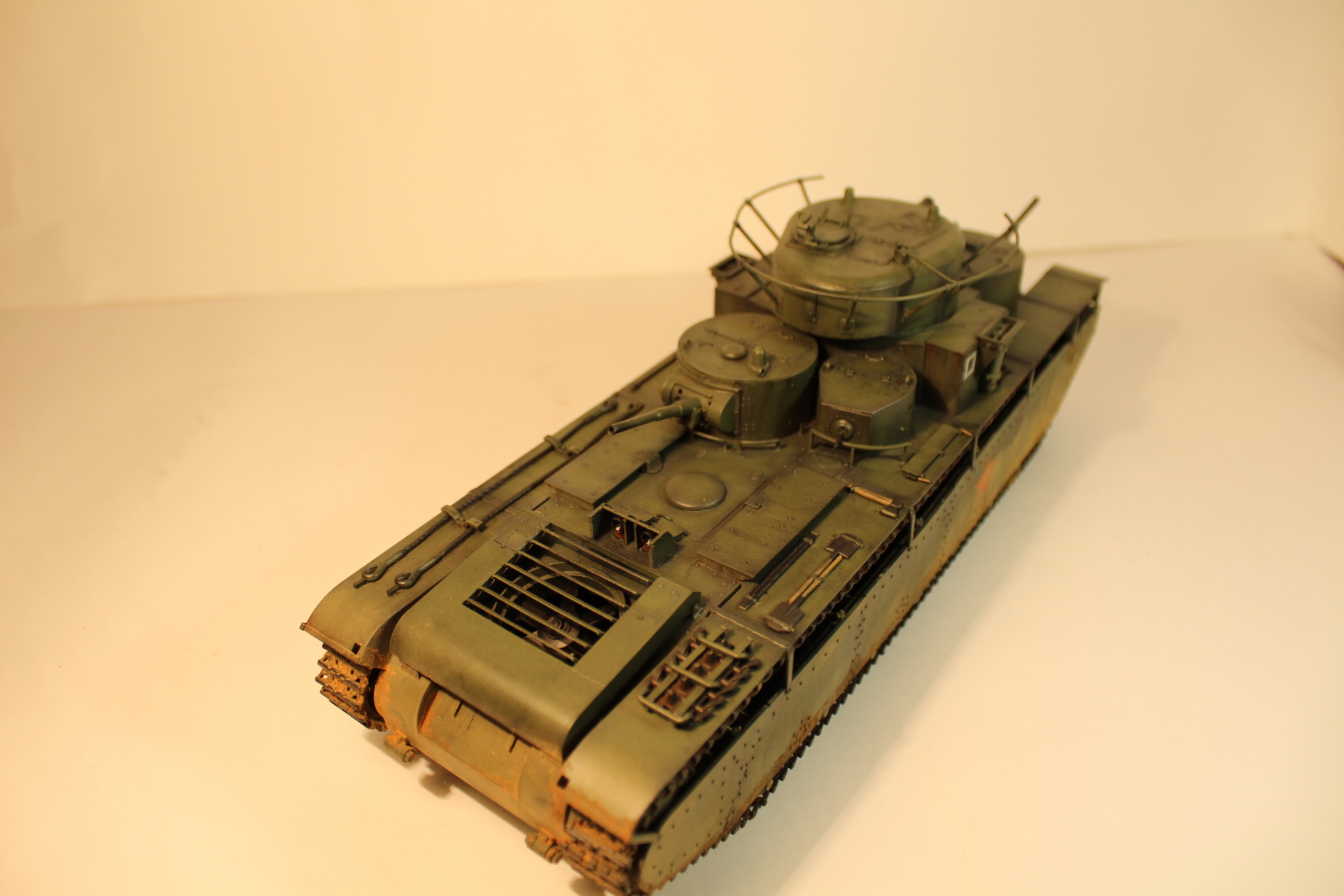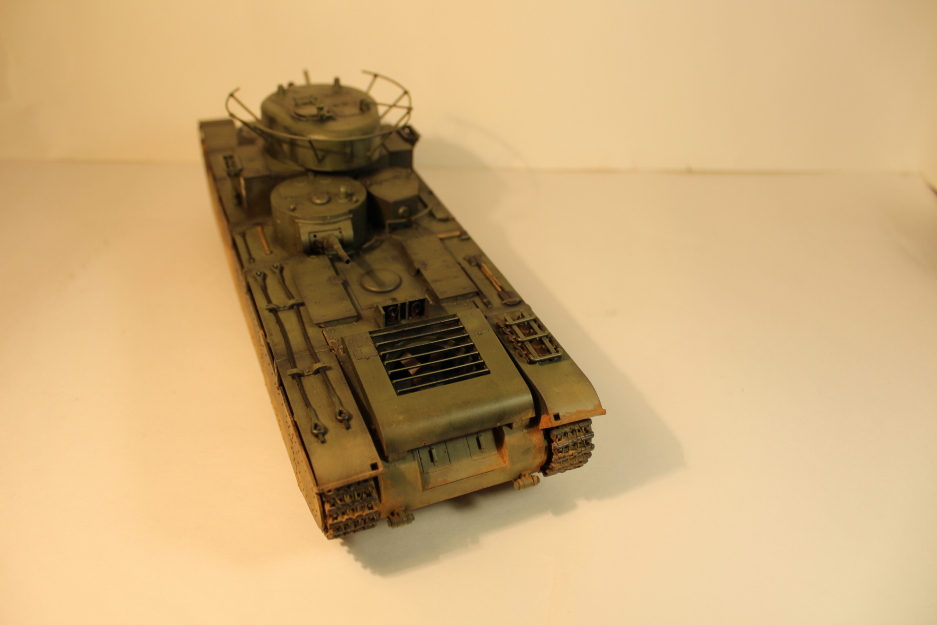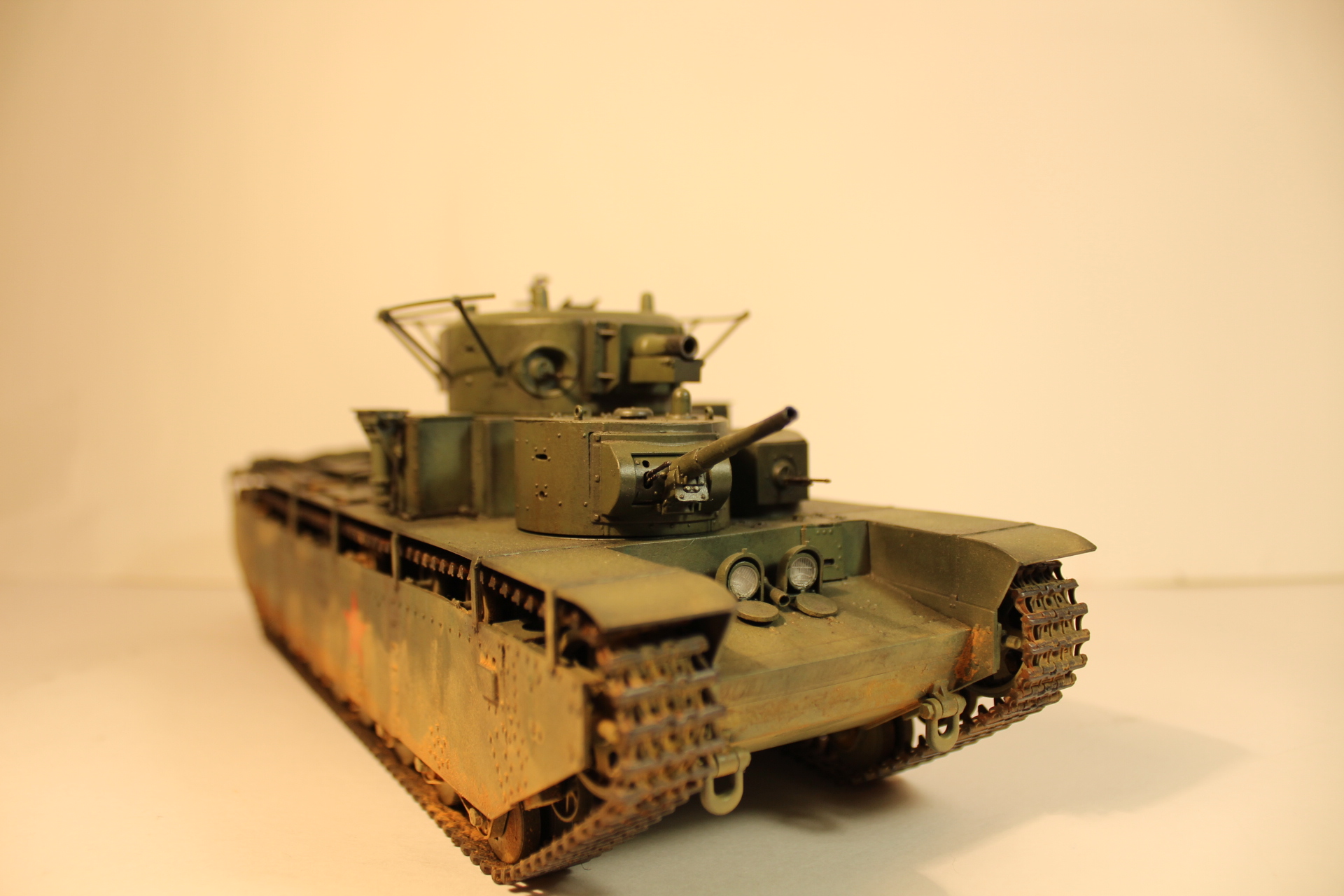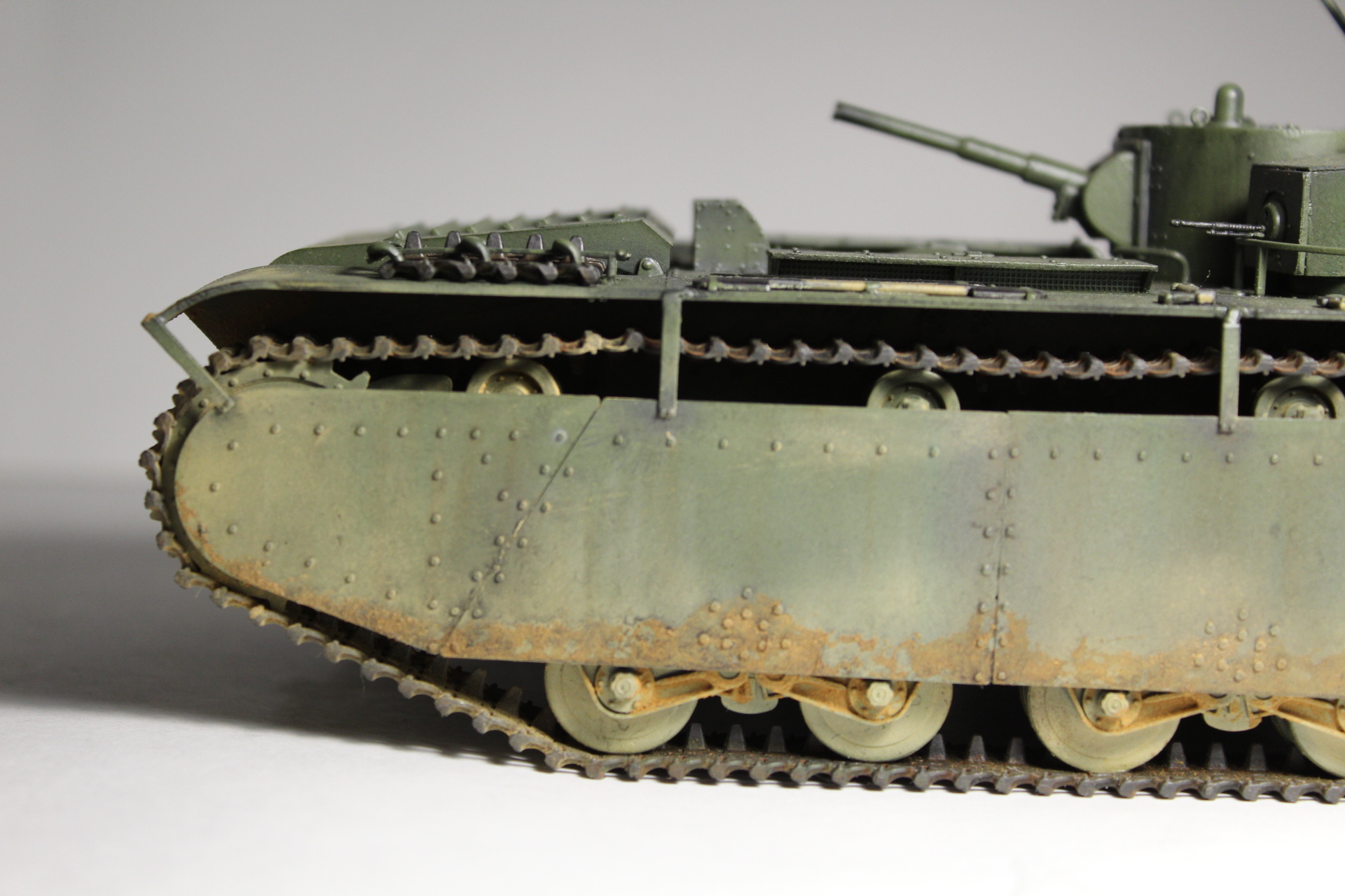 Ночью острота зрения резко снижается, можно легко пропустить щель или шов не обработать, сам часто работал по ночам, очень знакома эта ситуация. Тоже планирую собирать Т-35, но прикидываю сколько займёт это времени и всё откладываю, хотя сама модель у же давно куплена.