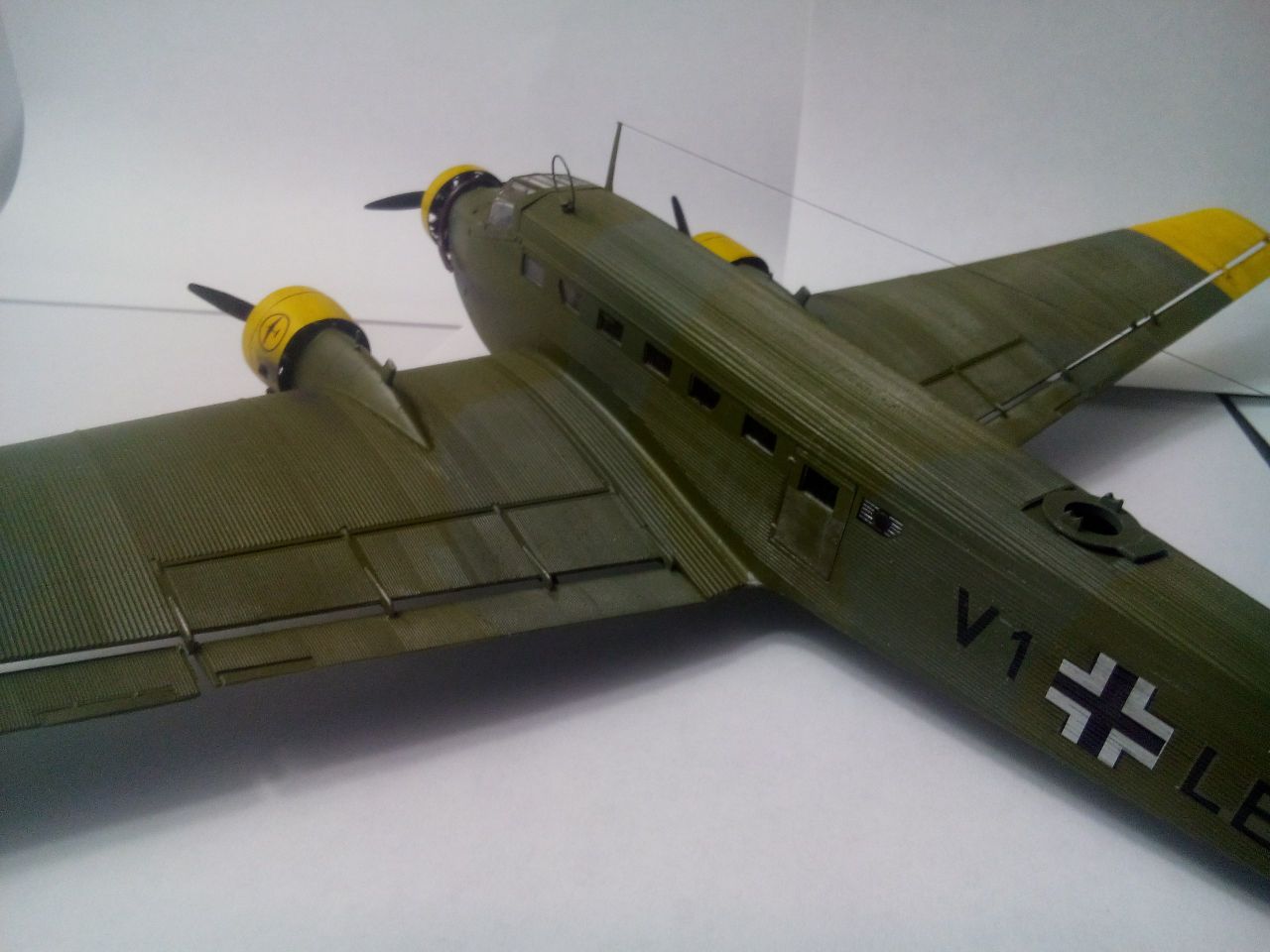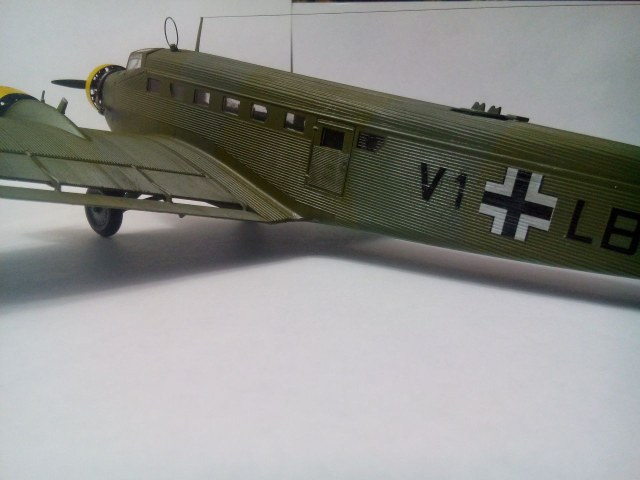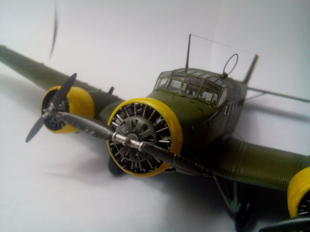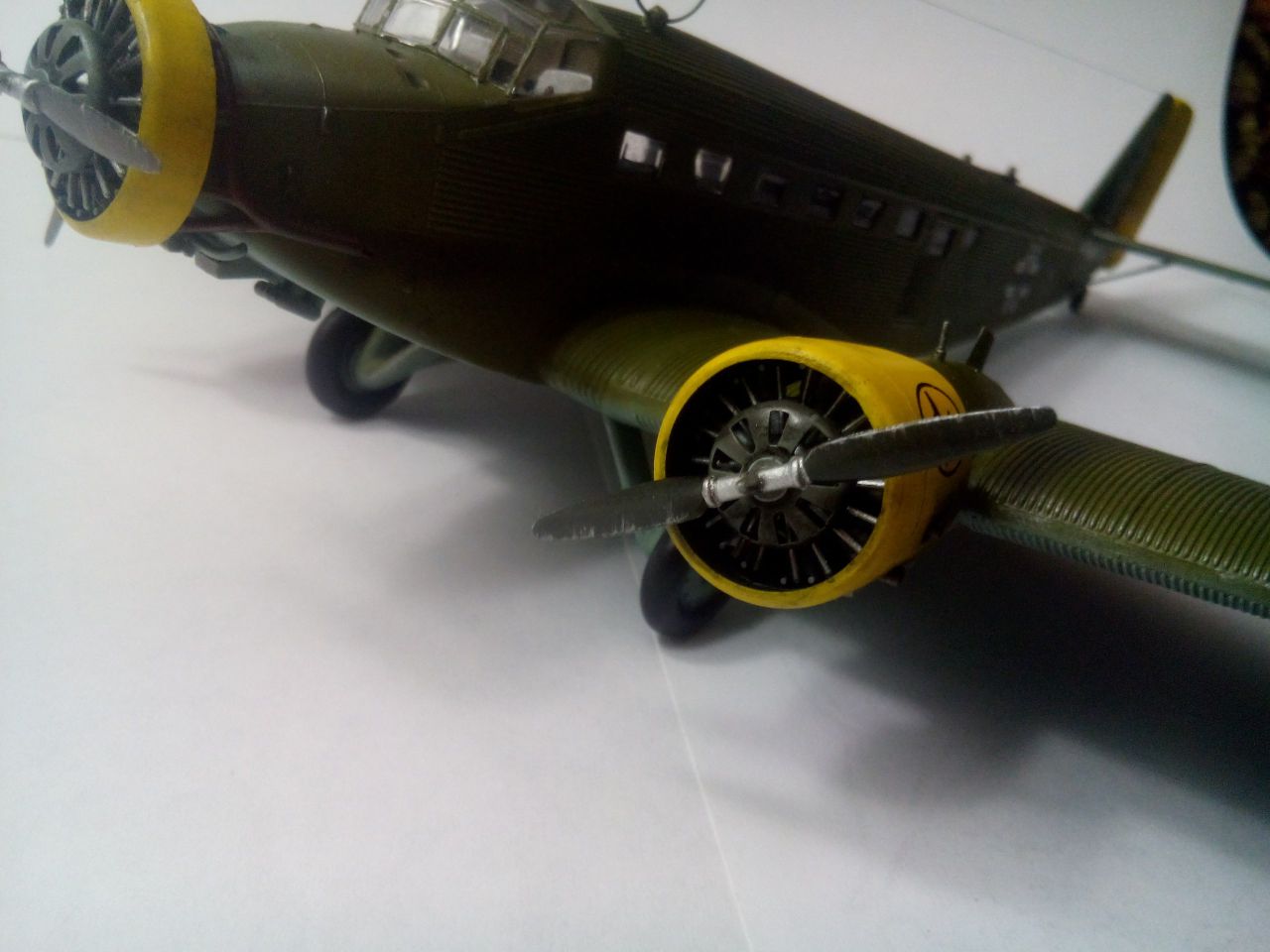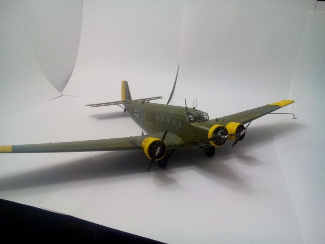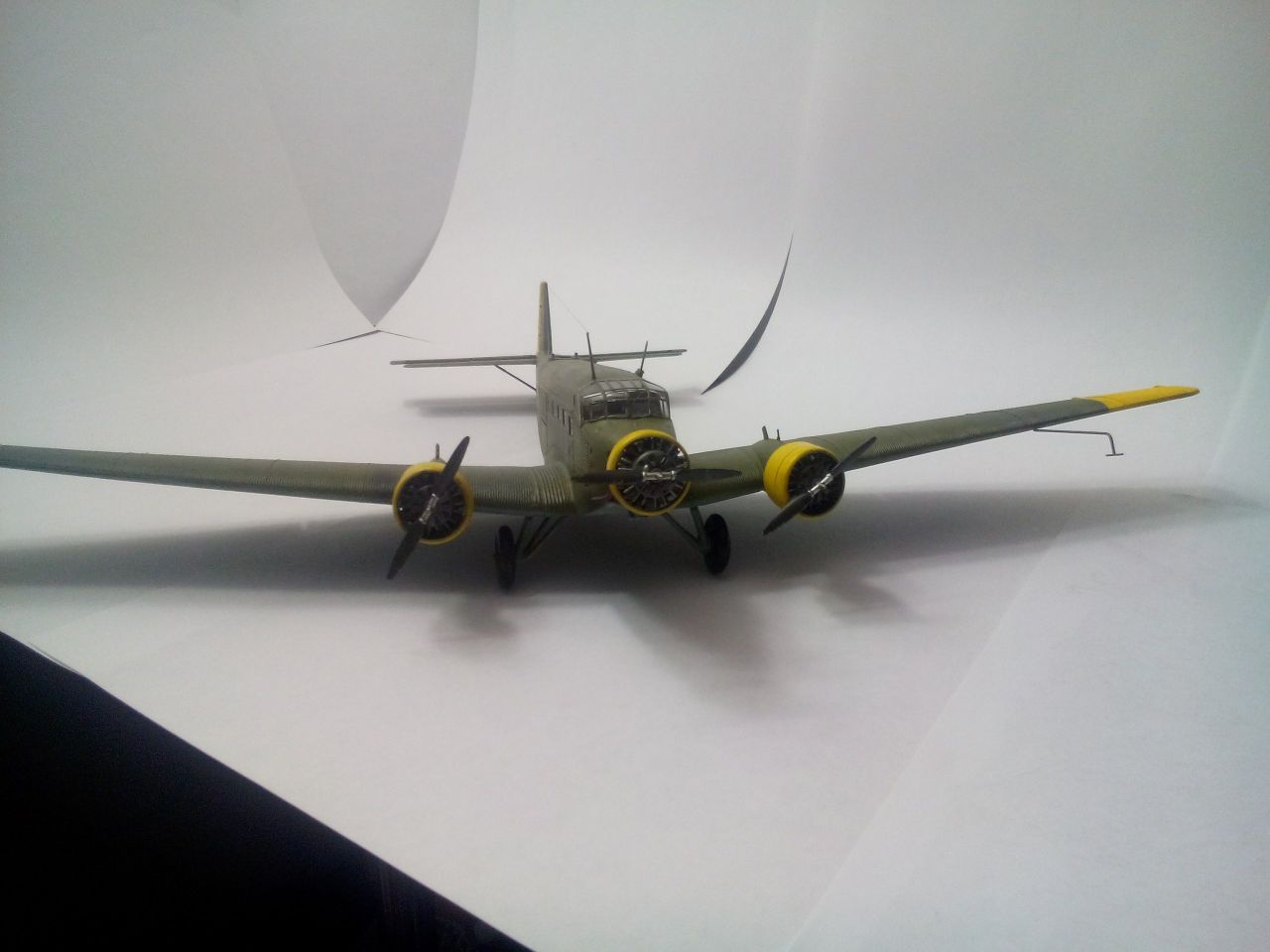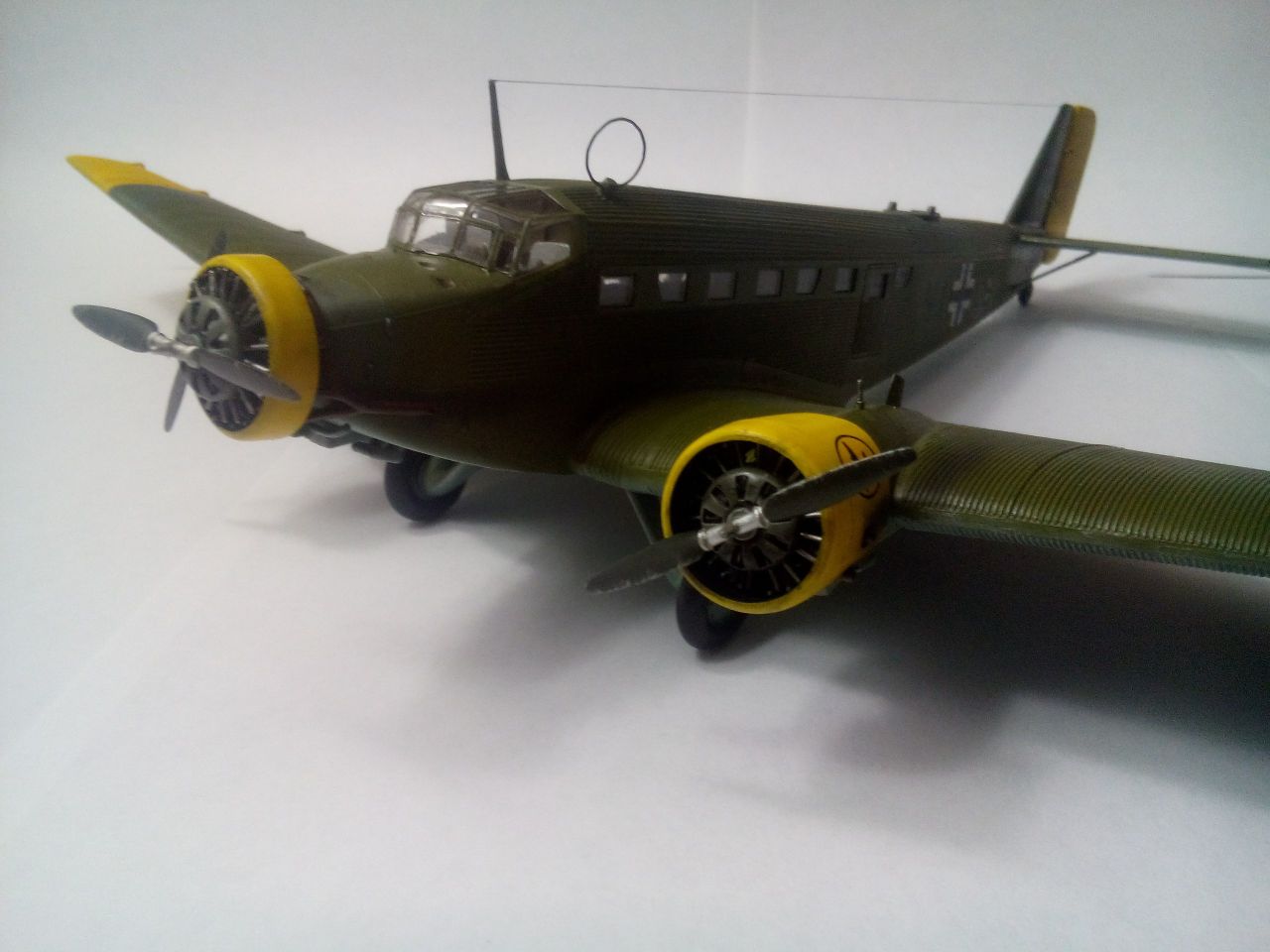 Модель немецкого военного транспортного самолёта, знаменитая Тётушка Ю. Стыковка деталей на 3. Пластик в работе хрупкий. Сделана круглая антенна из медной проволоки, и протянута длинная из нити от капроновых чулок. Окрашивание акрилом от Тамии и Акан, лаки ЗИП. Пулемёт в турель не поставил, т.к. В наборе просто кусочек пластика не похожего ни на что... Фото сохранились эти, модель подарена.