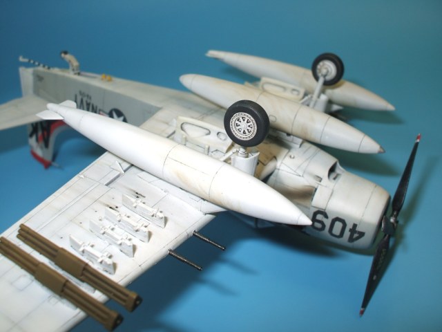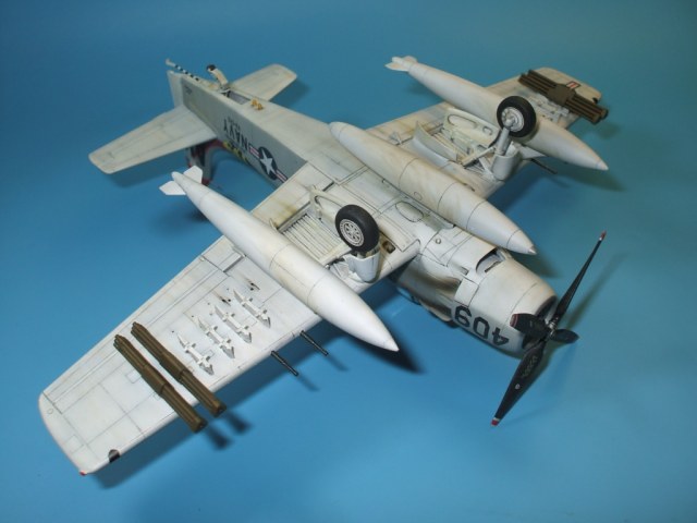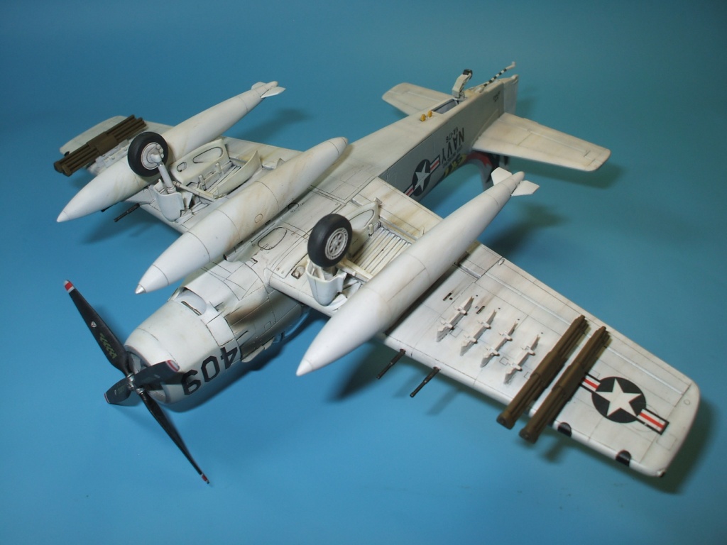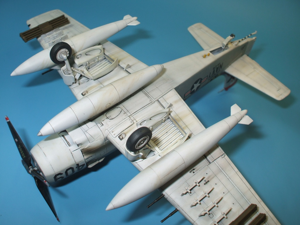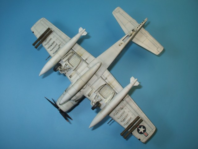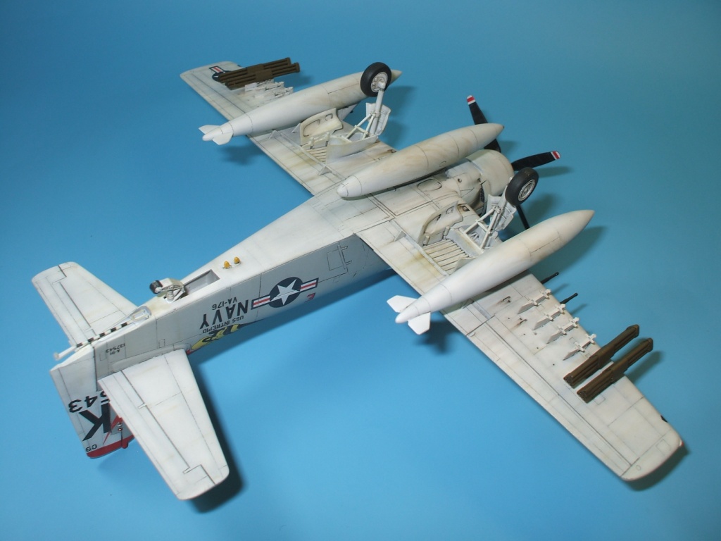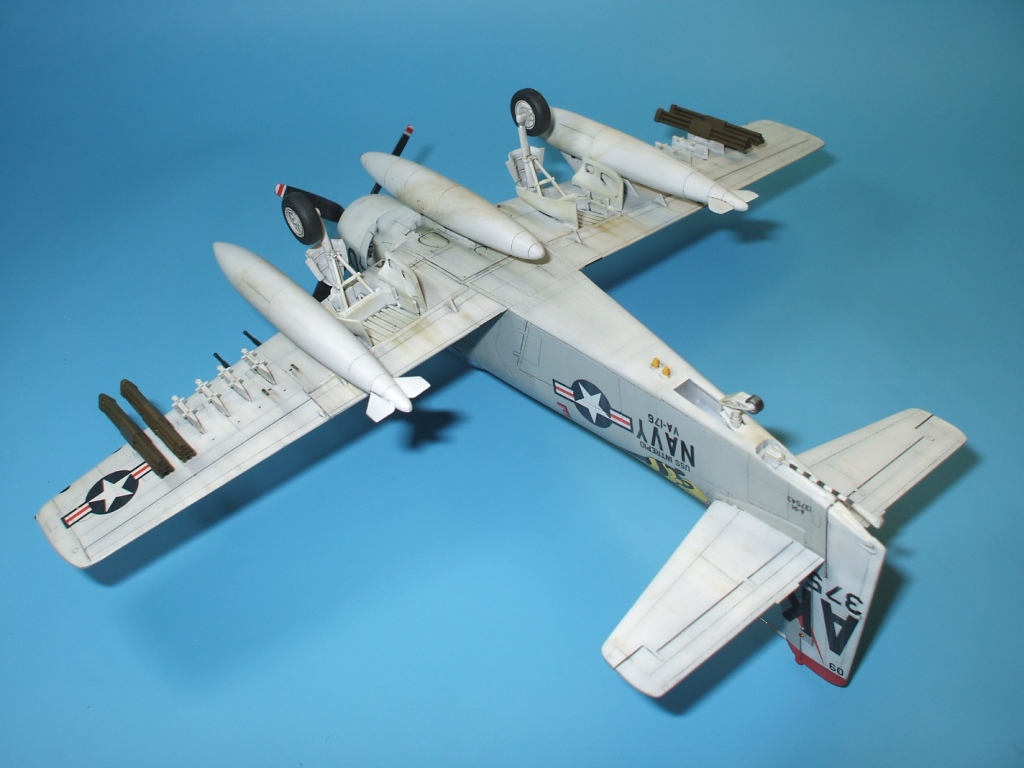 Доброго времени суток. уважаемые каропчане. Сегодня хочу предоставить Вашему вниманию модель палубного штурмовика ВМС США А-1Н Skyraider. Модель от всенародно любимого производителя Hasegawa в рекламе не нуждается. Набор далеко не новинка, много раз переиздавался, в результате чего обзаводился новой упаковкой и декалью. Данная модель собиралась на заказ в «изкоробочном» варианте, то есть ни какие доработки и дополнения в процессе сборки не производились. Хотя, как по мне, модель выглядит довольно скромно из-за крайне бедного вооружения предоставленного производителем. Самолет- трудяга, с таким количеством внешних узлов подвески, просто не смотрится с пустыми пилонами… Не большое изменение в «изкоробку» все же было внесено, оно коснулось оформления модели. Вместо штатной декали заказчик приобрел декаль от фирмы PRINTSCALE, ибо «родные» варианты ему показались скучными. Окраска модели производилась химией Hobby Color и Tamiya, также использовалась футура, смывка от MIG и масло от Wilder, декаль прекрасно отреагировала на химию от GS.