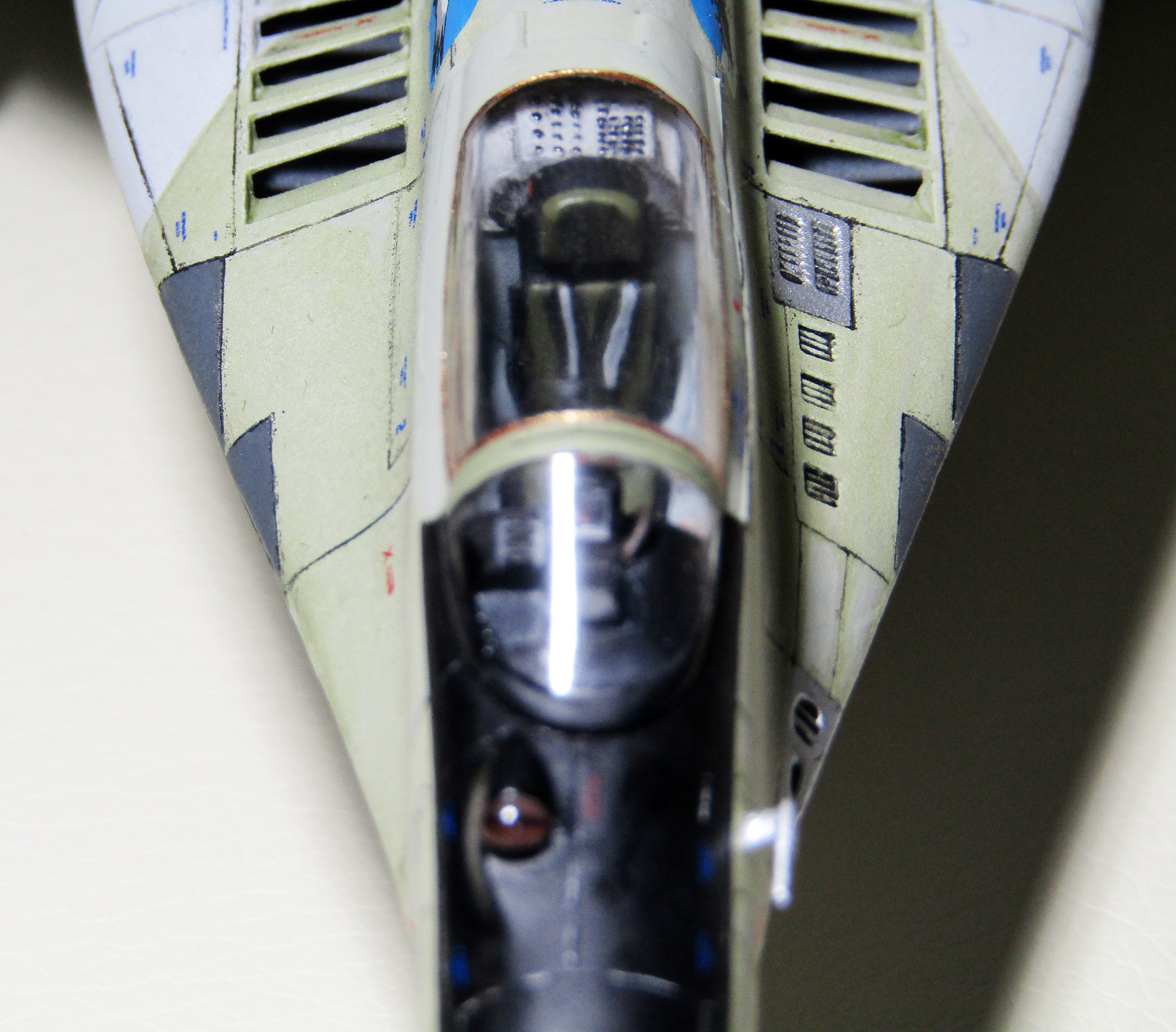 В целом, хорошо! Видны, правда, швы от стыковок половинок воздухозаборников. И не прорезаны декали - расшивка должна бы по ним проходить, тем более такая контрастная.