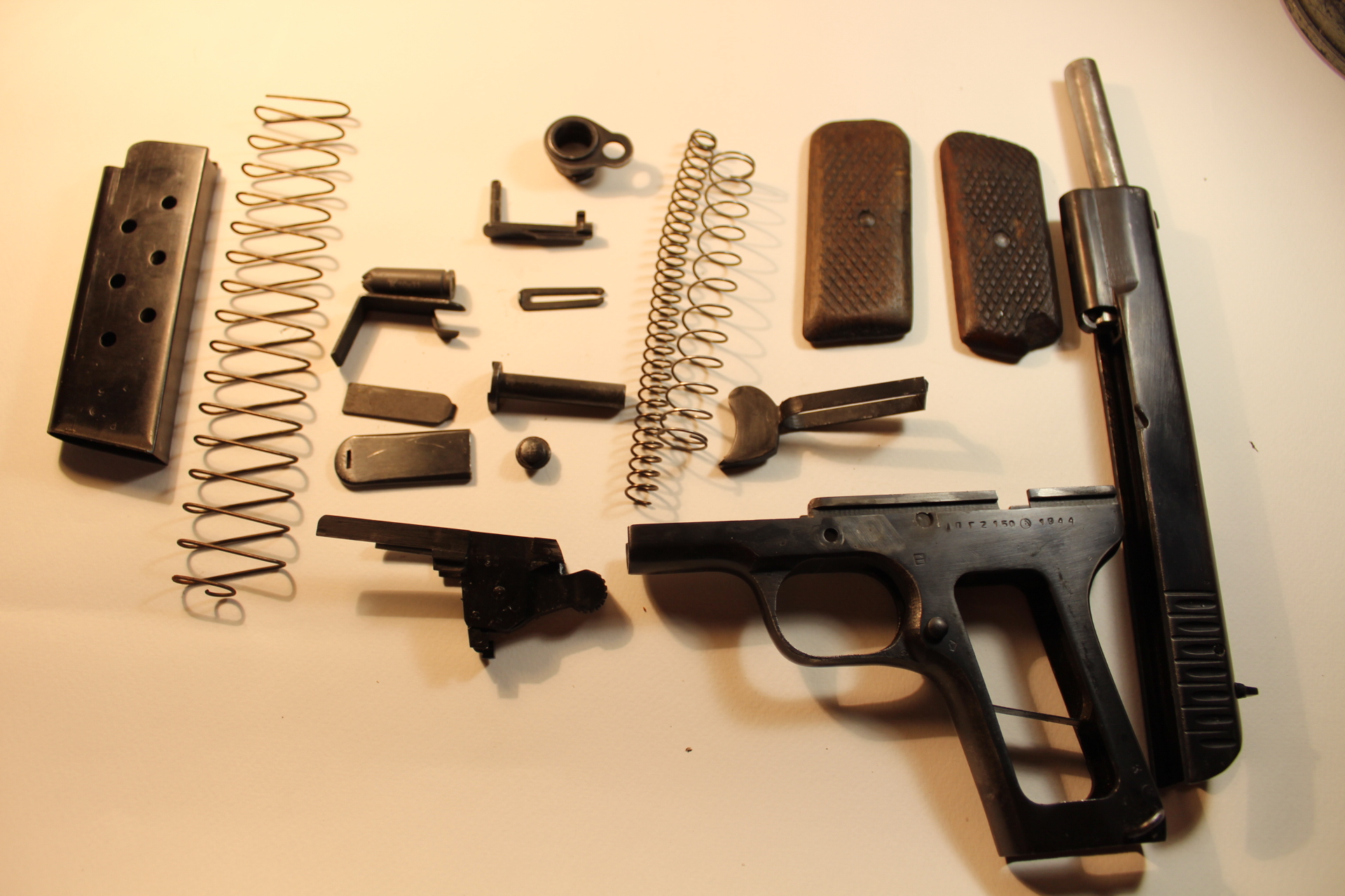 Мне ТТ самому нравится хотя первая моя разборка данного пистолета кончилась тем что пружину боевую и упор с направляющей я долго искал по всей комнате . Ау вас что за ТТ охолощенный купленный в магазине с завода ? то там они комплектуются пластиковыми щечками даже на военные и довоенные выпуски ,я после покупки поменял щечки на дерево .