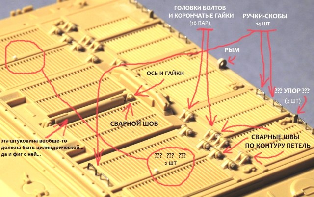 - «musthave» для точной модели - сеточки для решёток МТО; «лечится» отдельно приобретаемым ФЭ от Эдуард/ Е.Т. Моделс/ Вояджер; есть и родные, от Тамии - но хрен достанешь...