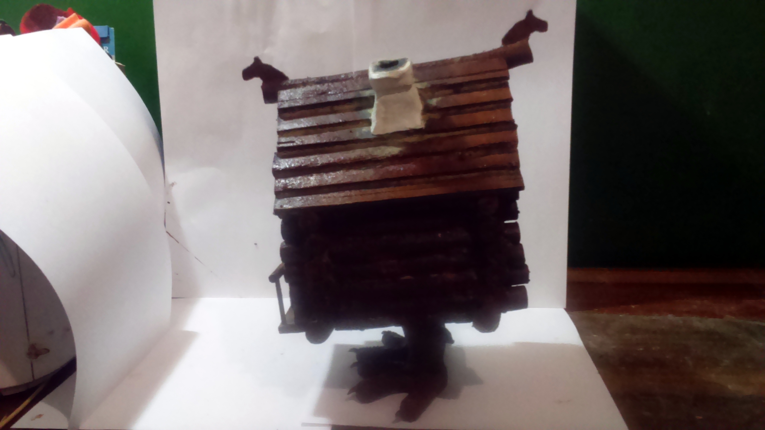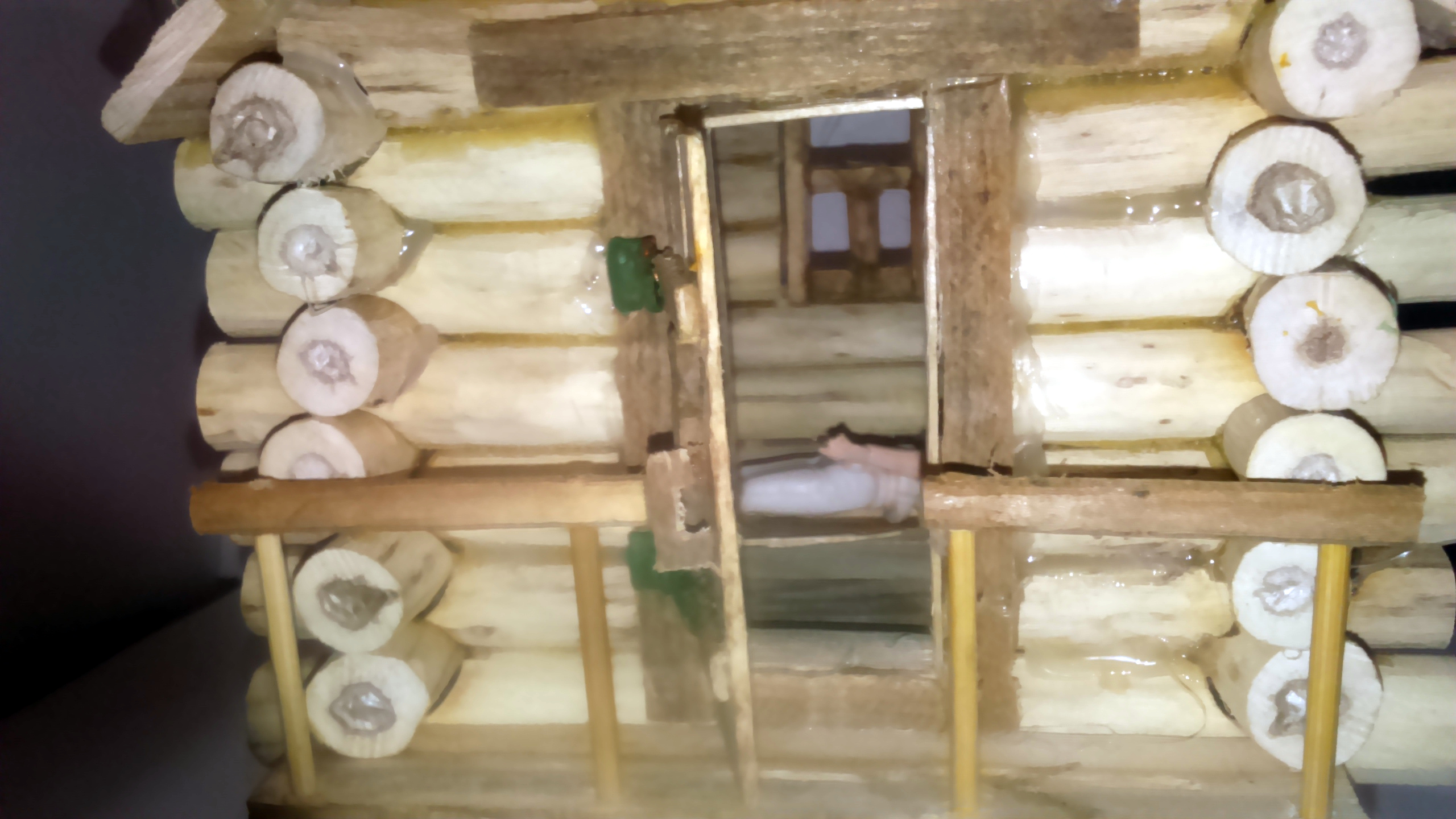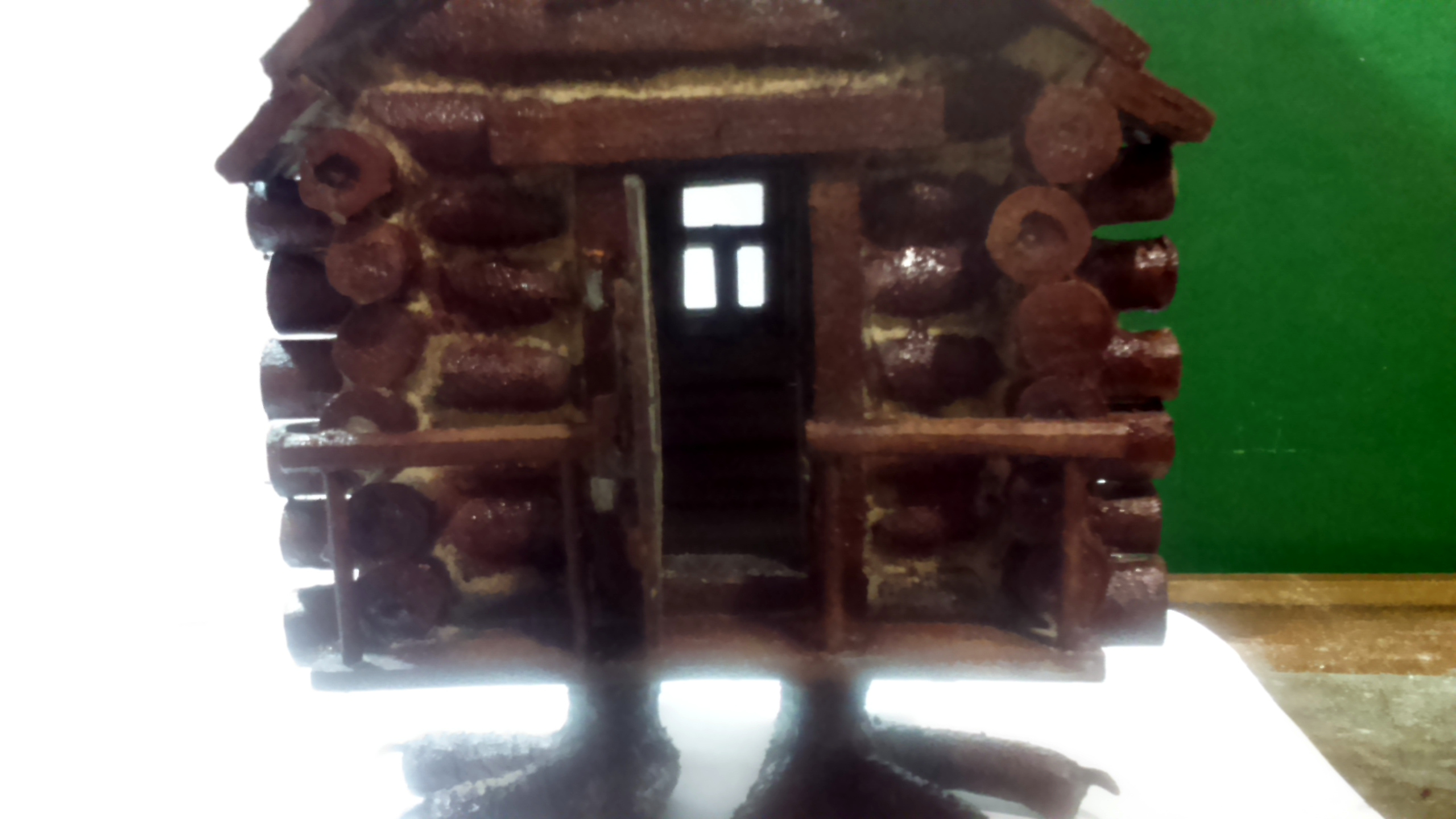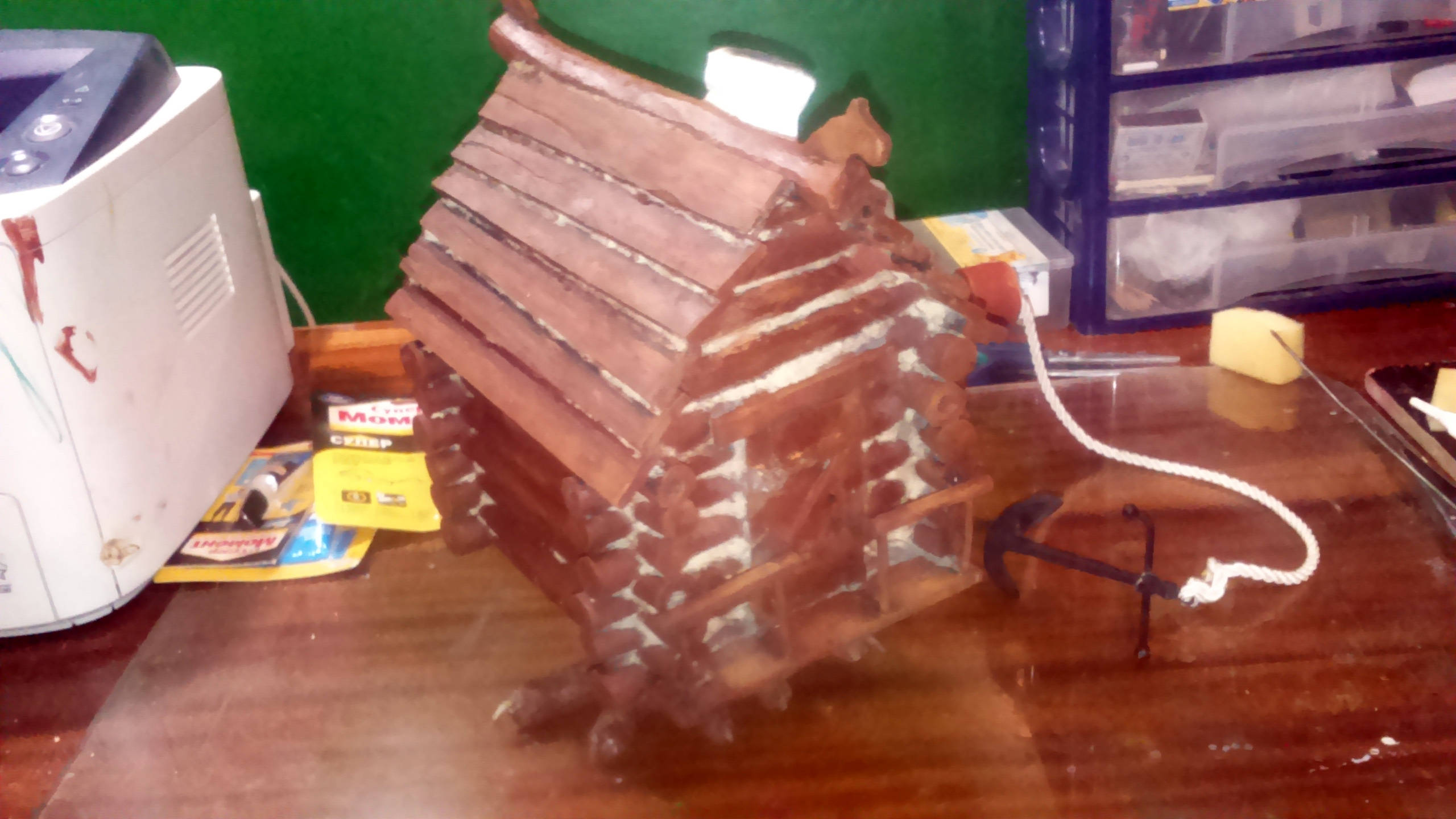 Ни в коем случае не обижаюсь. С крышей да, ошибка вышла. Первый ливень пропитает влагой насквозь каждое бревнышко сруба. Да и рейки чрезвычайно широкие и толстые. Может кровлю убрать и заменить более масштабной рейкой? Только согласятся ли "заказчики" на реконструкцию? Какие цели я в этом проекте перед собой ставил? Хотел научиться красить. Пришел к выводу, что кистью это сделать очень трудоемкое занятие. Тут аэрограф бы не помешал.