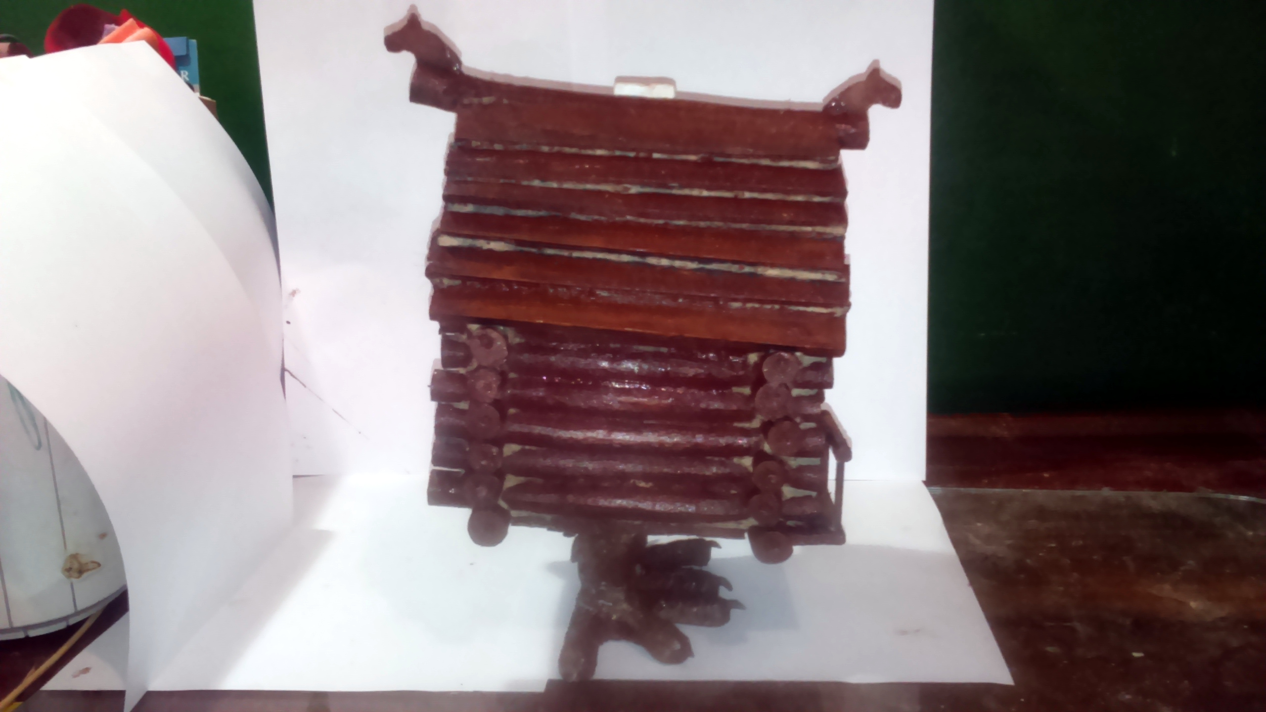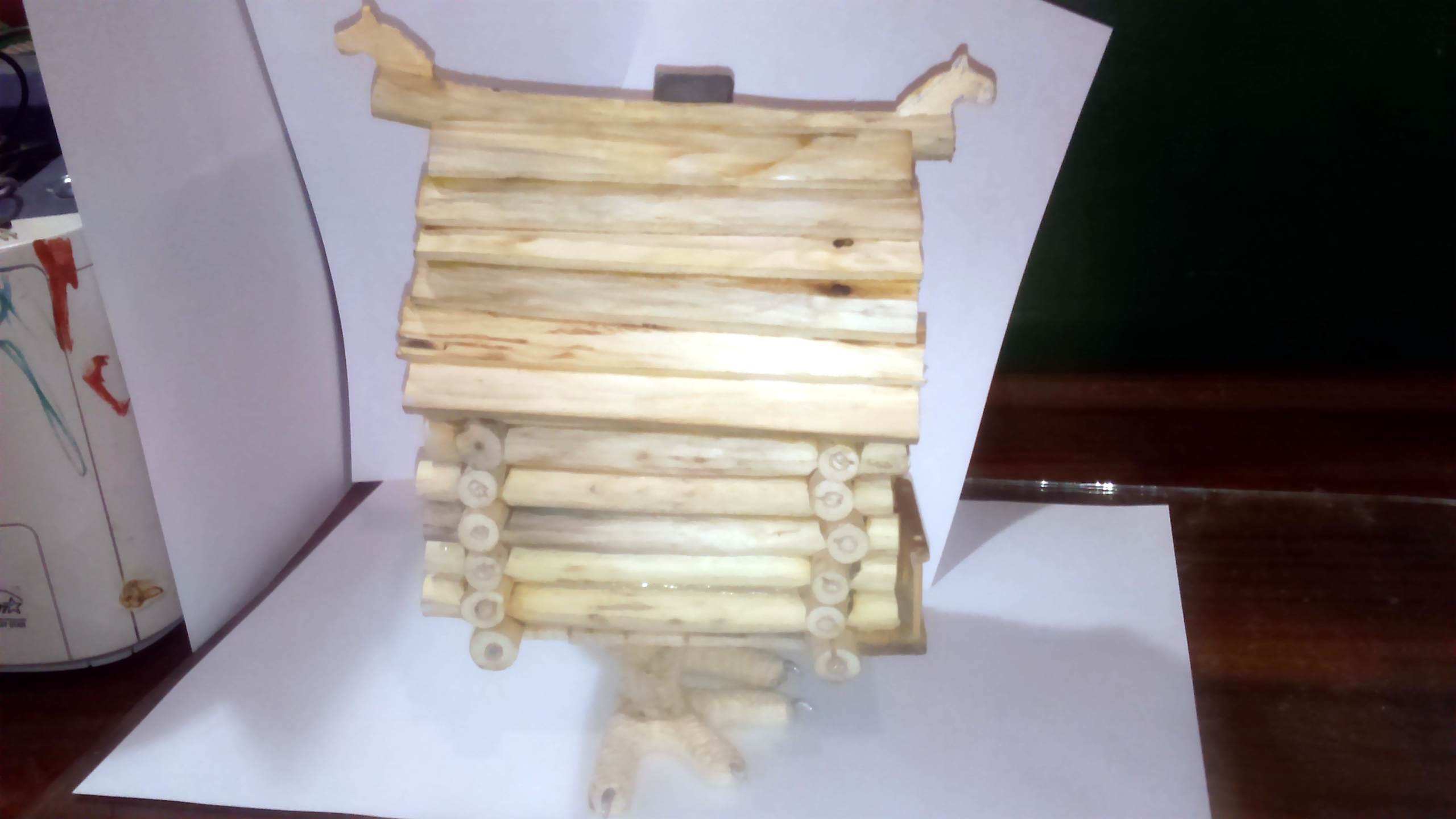 Читал недавно детям сказку Эдуарда Успенского «Вниз по волшебной реке». Естественно им захотелось иметь избушкуна курьих ножках. Да где ее взять такую? А тут на форуме увидел копилку Анатолия Печникова и решил сам попробовать изготовить нечто подобное.