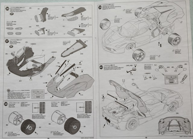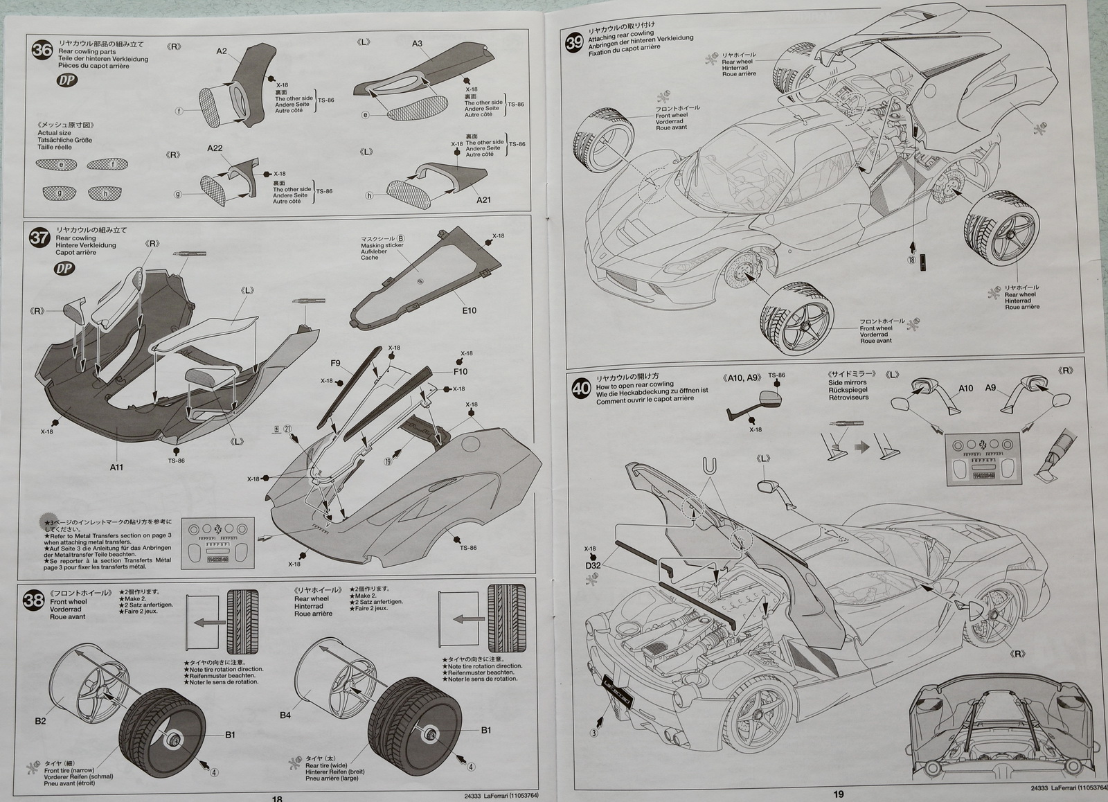 Представляю обзор модели LaFerrari, приобретенной год назад и только сейчас начинаю её сборку. О качестве продукции Тамии много уже говорилось, но повторюсь - оно отменное. Некоторые детали можно красить на литниках, деталь срезается с обратной стороны, где нет краски. Судя по инструкции, сборка будет трудной, но интересной и кропотливой, особенно покраска.