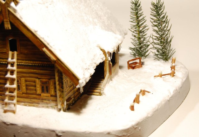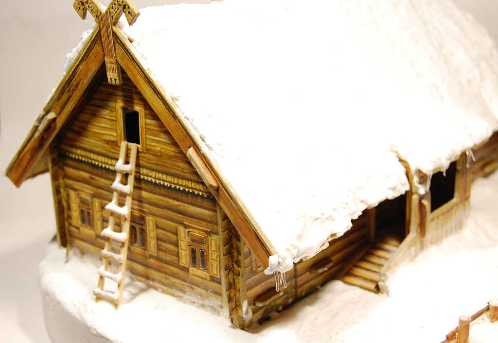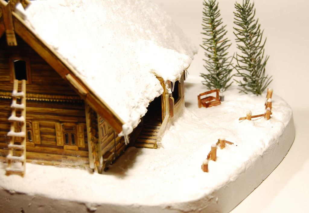 Материал картон Умная бумага,Кутузовская изба,остальное самодельное,колодец из спичек,забор из разных опилок)Во общем вот так!)
