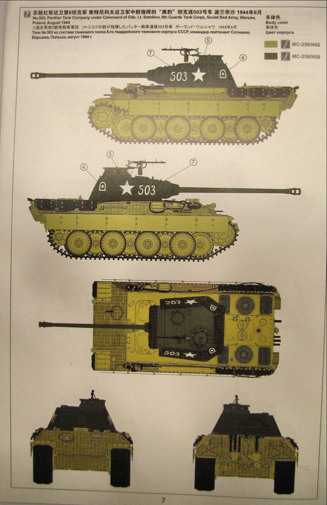 Вариантов окрасок аж 7 штук, но особым разнообразием они не отличаются, кроме последнего. Седьмой - это знаменитая машина из роты Сотникова, захваченная под Варшавой. Декали выглядят неплохо, не понравилась только белая звезда на наш трофей. На фото отчетливо видно, что звезды весьма кривые, декаль же как по трафарету. При этом сами цифры старательно воспроизводят рукописные.