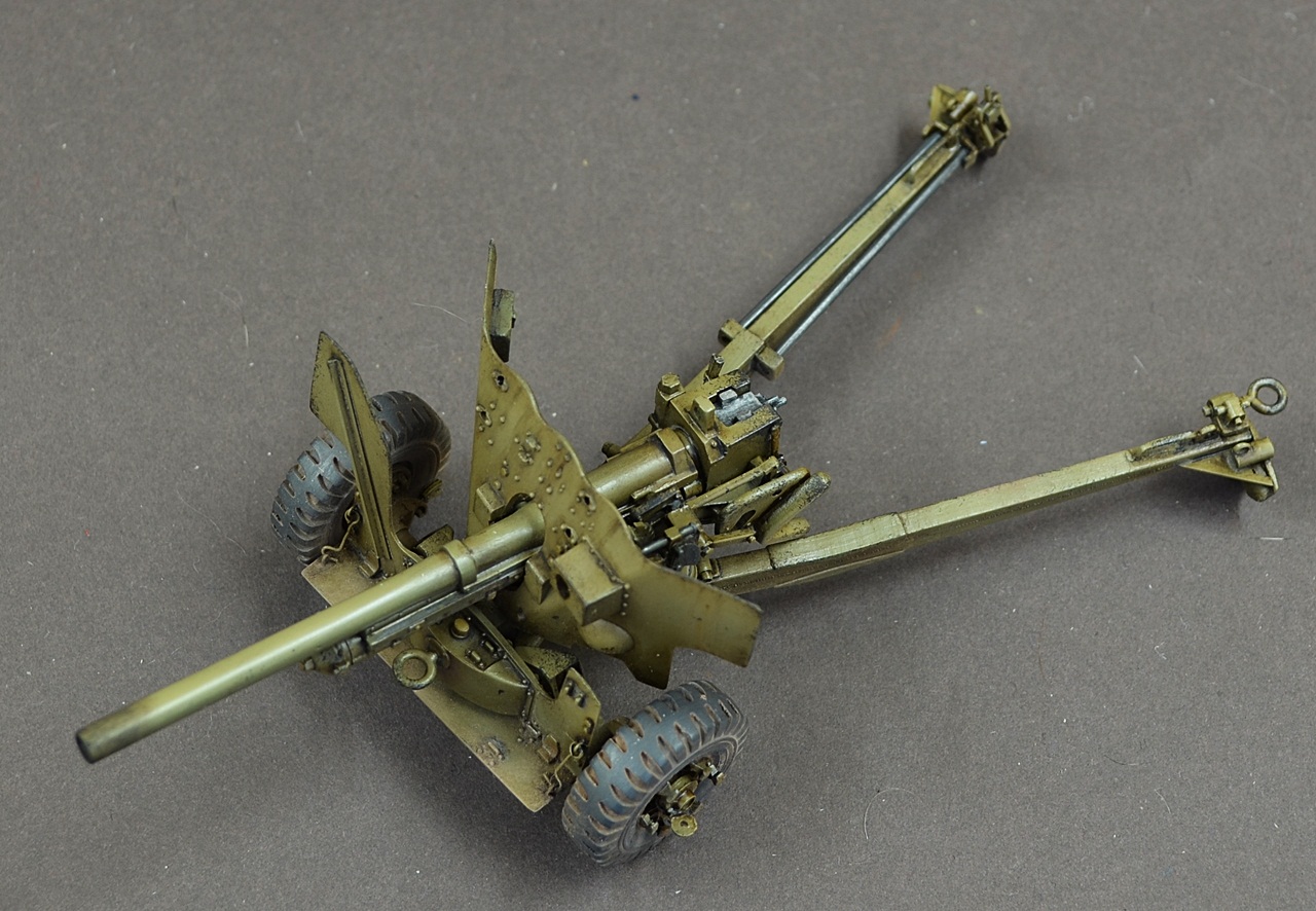 Добрый день.Еще одна Звездовская пушка.В данной модели собираемость не очень.Детали не стыкуются и много утяжин которые нужно шпаклевать.Толщину щитков пришлось уменьшить.Крюки и петли держащие нижний щиток заменил на проволочные.Отверстие ствола немного расточил.