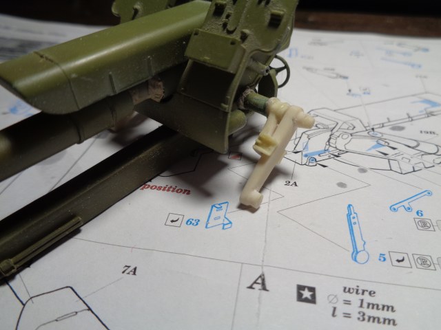 Родной ствол удлинил на шесть мм простой вставкой литника. Дульный тормоз сделаем из куска карандаша. Был переделан полностью кронштейн крепления ствола к средней станине, ну и еще много всего по мелочам. При покраске использывалась тамиевская грунтовка, зеленый защитный из старых запасов от Хобби+. Так же Немного смывки и пигментов.