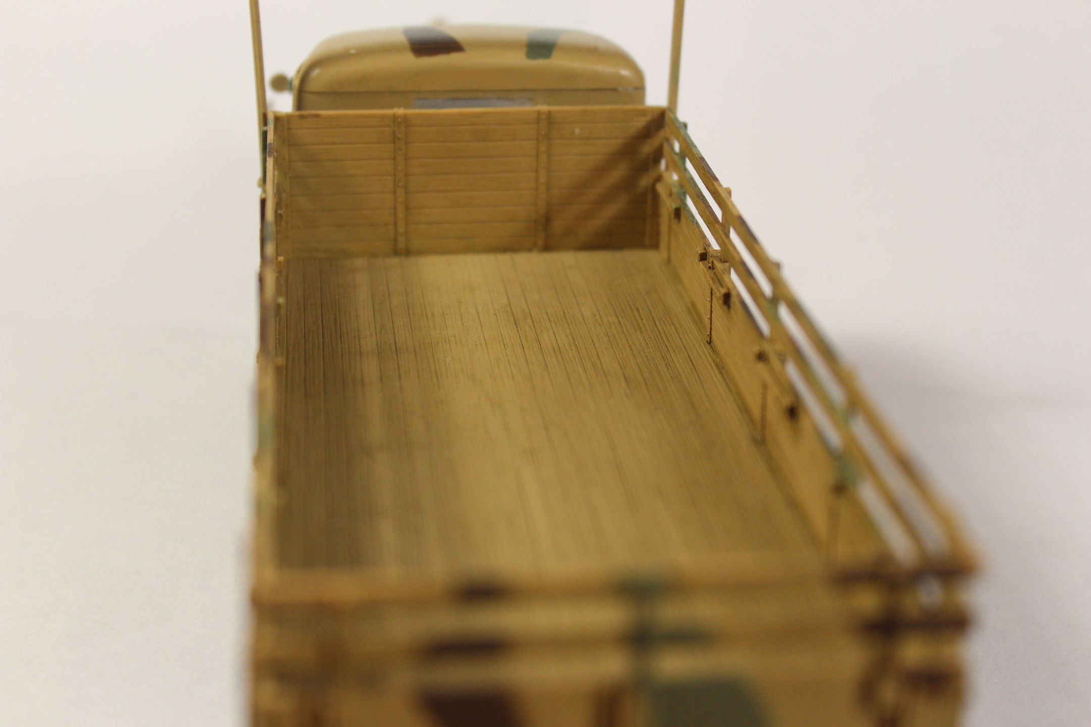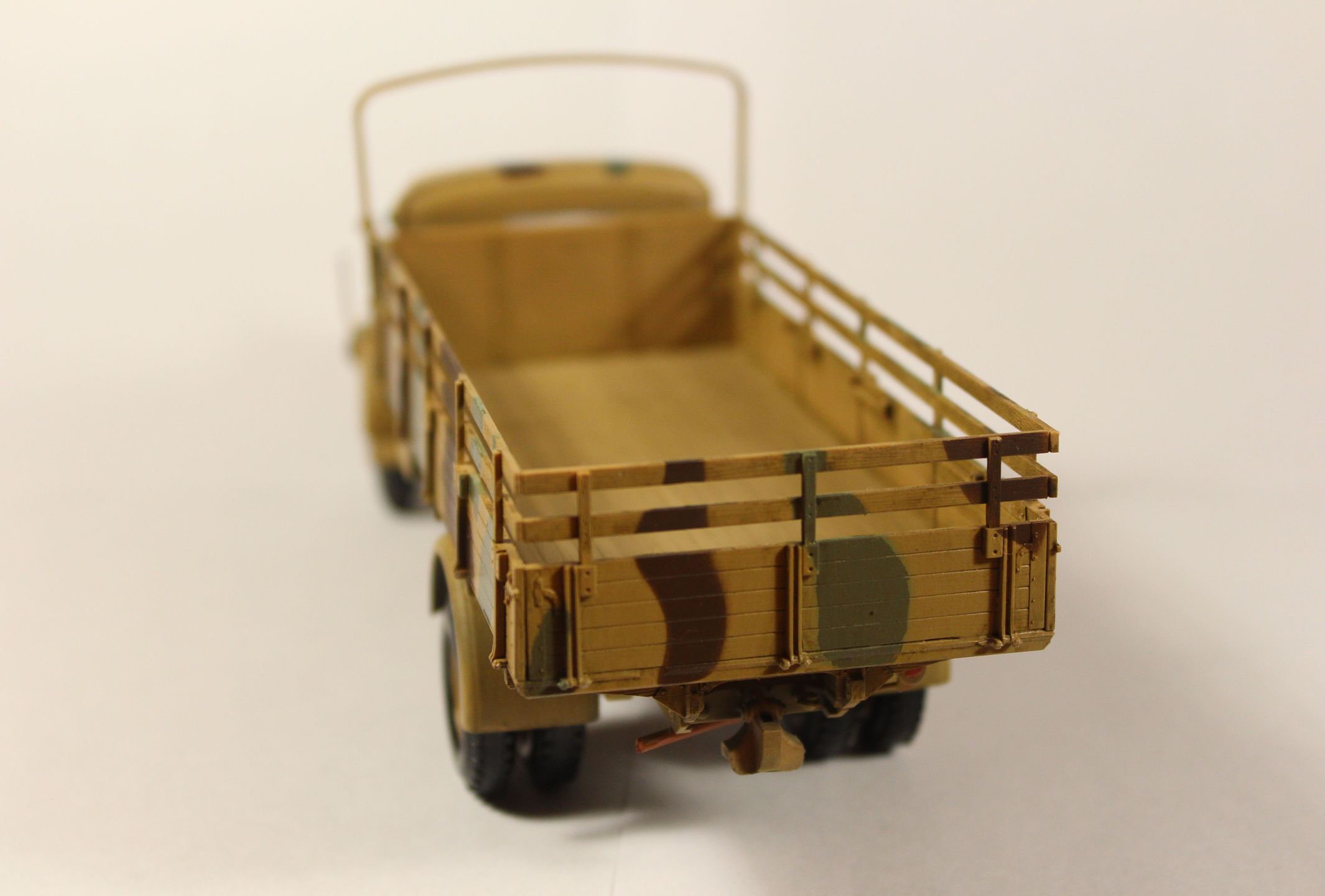 Нужно сделать смывку хотя бы черным, хорошо бы маслинных точек наставить, ну и обязательно следы эксплуатации нанести - хотя бы припылить колеса и арки.. про сколы молчу..