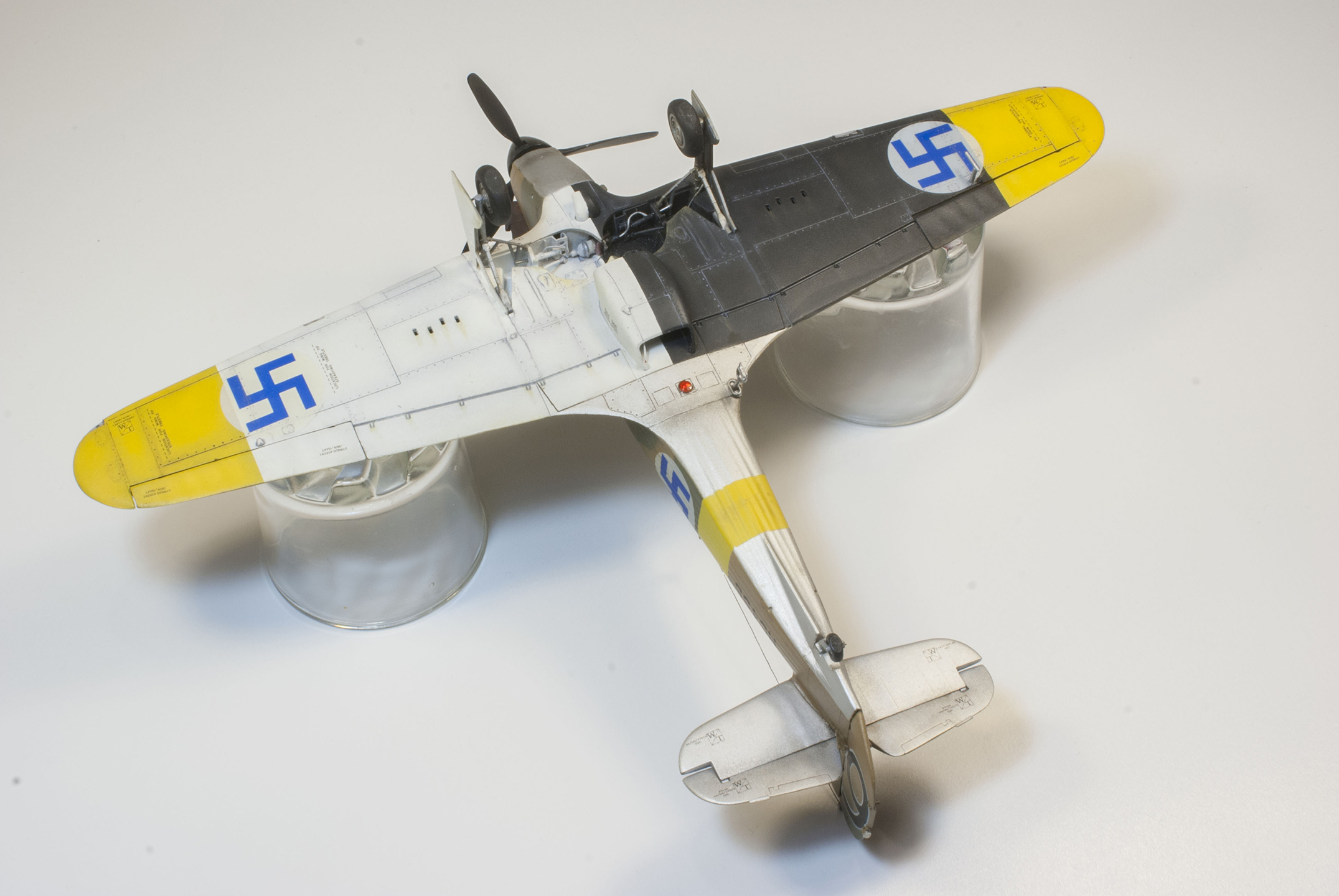 Отличная модель получилась. Вопрос для собственного просвещения: финны делали в качестве опознавательного знака голубую свастику в белом круге. Разве под белой краской (в данном случае вид снизу) был виден камуфляж?