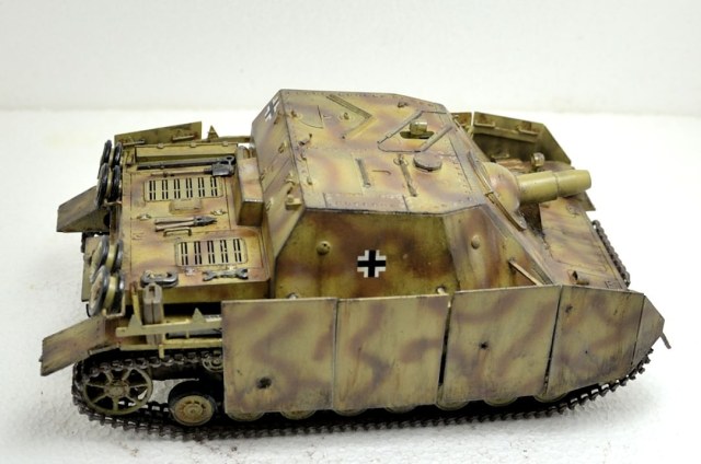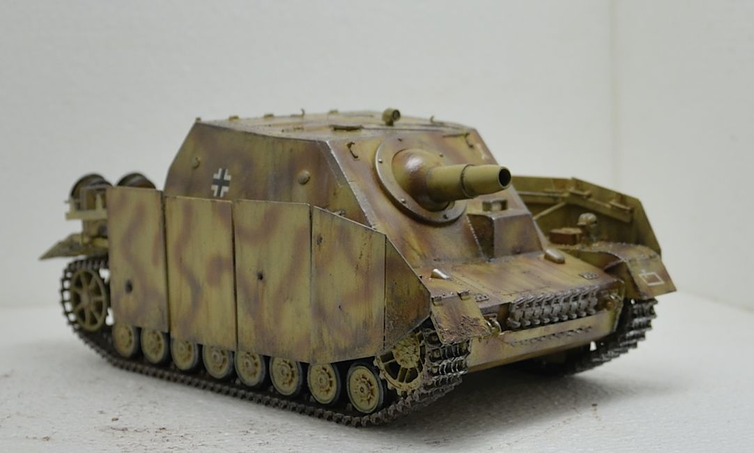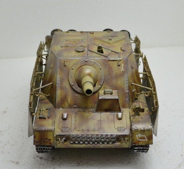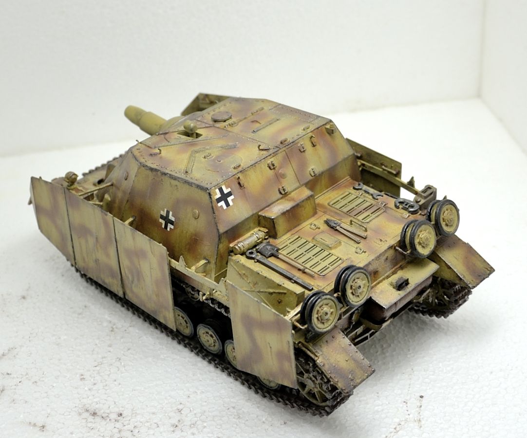 Приветствую! Модель в целом выглядит не плохо. Немного дубовато правда. Напоминает экспонат в Кубинке. Возможно стоит сделать подставку, может быть "замаскировать" травлёными или самодельными ветками с листвой, посадить фашиста на броню. В общем попытаться немного оживить довольно не красивый прототип. Окраска на конец войны вполне похожа и выполнена вполне достойно. Возможно стоит немного потрудиться над "обгадингом". Несомненно, модель не заслужила мусорного ведра. Есть потенциал. И уж если у вас хватило сил её переделать, то провести небольшие косметические доработки думаю не будут проблемой.