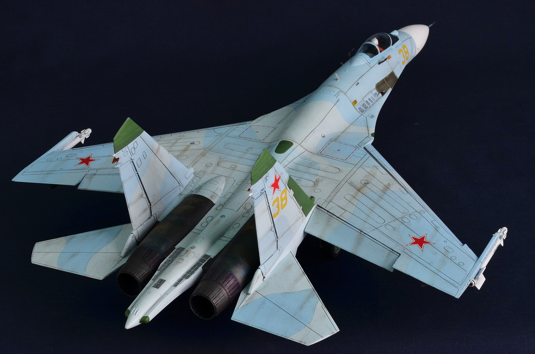все здорово сделано . мне нравится . но согласен только с единственным замечанием - на мой взгляд все-таки расшивочка черным смотрится контрастно . разумеется на летающих машинах она пачкается по-разному . но для себя сделал вывод - уж лучше серой залить . наверное закуплю себе серую , пусть будет , авось пригодится . а в целом - хороший , повидавший немало су 27 !!!