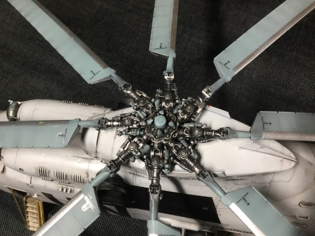 В районе ХР на килевой балке не должно быть детали олицетворяющей обтекатель или стабилизатор. И пята при открытых створках в убранном положении. Гребень за редуктором НВ приклеен наоборот. Но учитывая, что основную сборку сделал малой, то очень неплохо. Сложная модель для начала.
