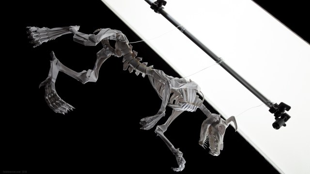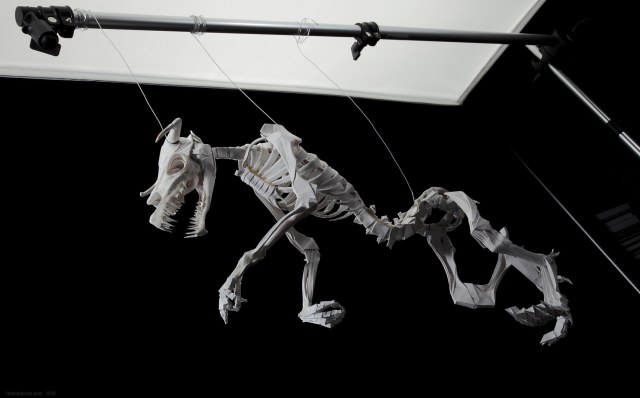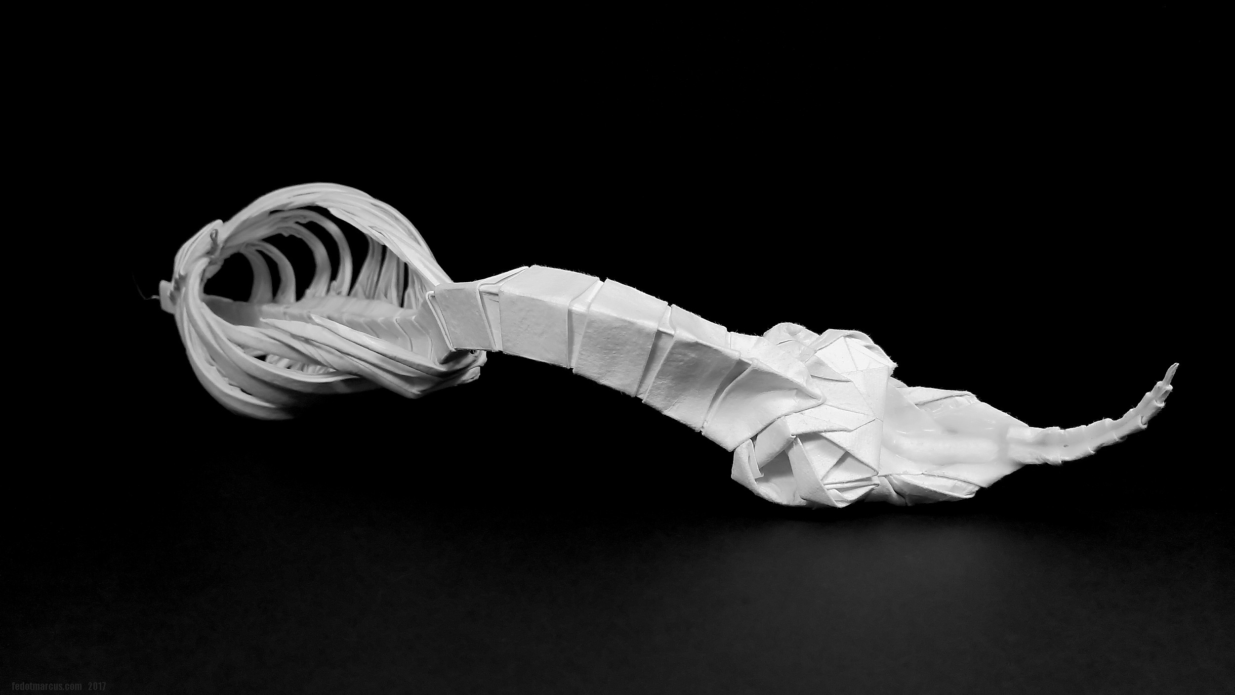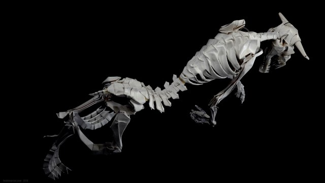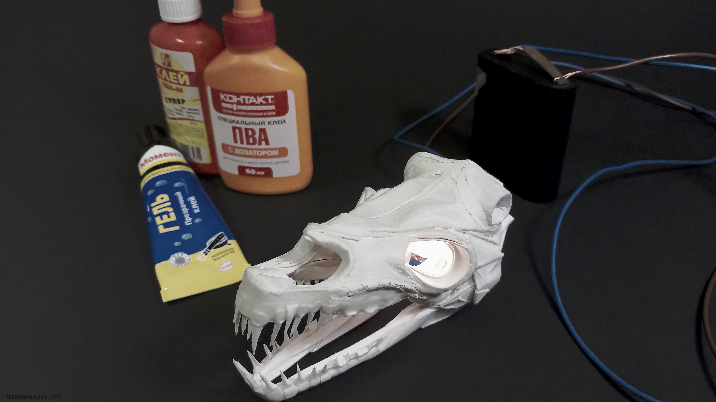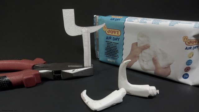 Работа выполнена из акварельной бумаги. Также использовалась паста для моделирования JOVI Air Dry. Экономия средств получилась сомнительная, т.к. рабочие свойства пасты далеки до эпоксидных шпаклёвок для моделизма. Рога сформированы из этого же материала, в качестве каркаса использован литник 4 мм в диаметре. Во время обработки надфилями материал стал трескаться и крошиться. Материал непрочный, проблемно обрабатывается надфилями, условно подходит для моделирования деталей сложной формы. По текстуре напоминает мел.