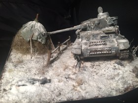 Зима в целом удалась, танк, конечно, никакой, т.к. немецкая машина здесь всё же основной элемент минидиорамы. Видно, что делалась давно. Такие модели надо или переделывать, но лучше собирать новую. Удачи!!!