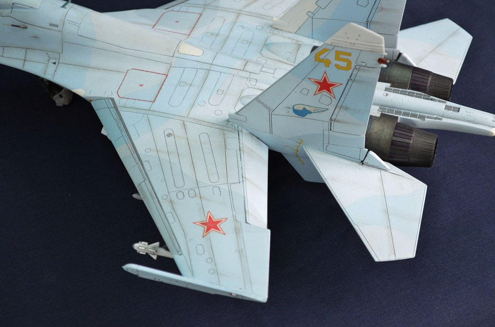 Окрашена модель: основной базовый голубой и камуфляж нитро-краской, бадяжил сам на глаз,руководствуясь фото из инета.