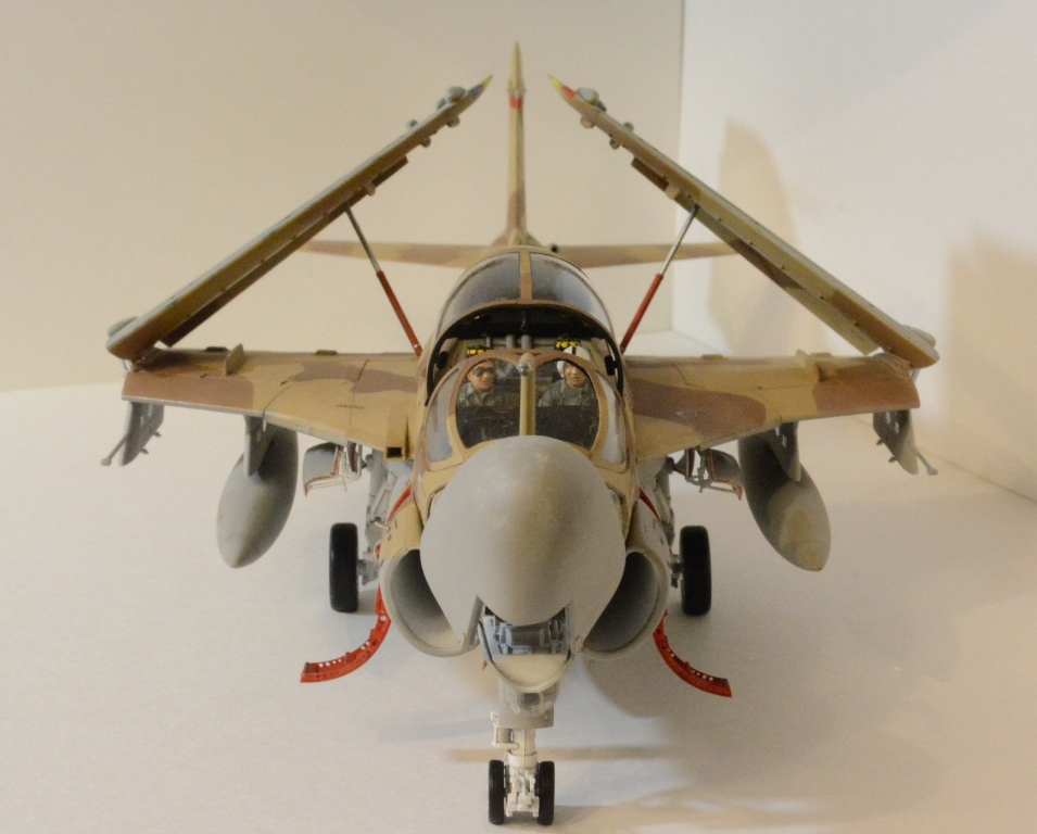 Доброго времени суток! Не скажу что модель далась легко, были определенные проблемы и в стыковке и с щелями, которые по своей неопытности не удалось свести до конца. В проектировании производитель явно был не дружественен к пользователю :). Камуфляж в сочетании с двухцветными деколями давольно таки сложный, но интересный и по сравнению с прототипом так же считаю что не попал в цвет, но тем не менее впечатления от стройки больше положительные и модель займет достойное место в коллекции. Из дополнений использовалась только лишь проволока для стоек шасси и пилоты из другого набора, все остальное можно считать изкоробки.