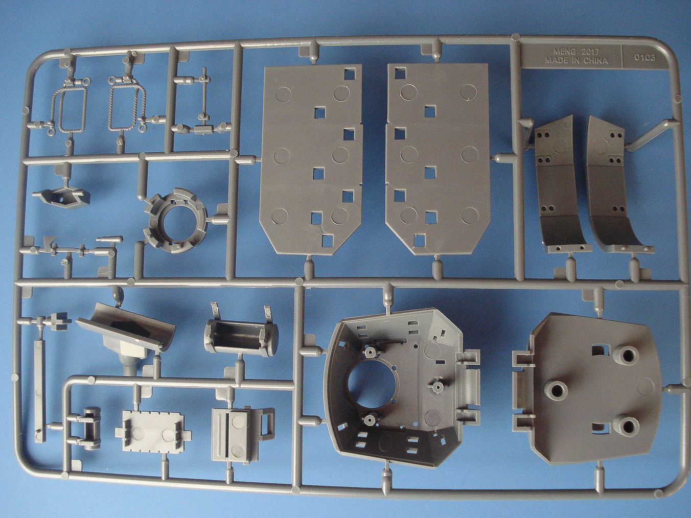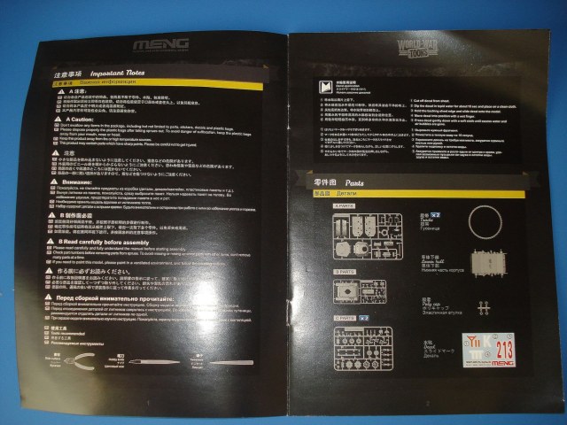 Модель упакована в плотной картонной коробке с боковой загрузкой,где находятся.4литника с деталями серого цвета.отдельно нижняя часть корпуса,виниловые гусеницы,4 втулки для катков,небольшая декаль(довольно бедноватая по сравнению с первыми 4-мя моделями) и инструкция на русском языке.