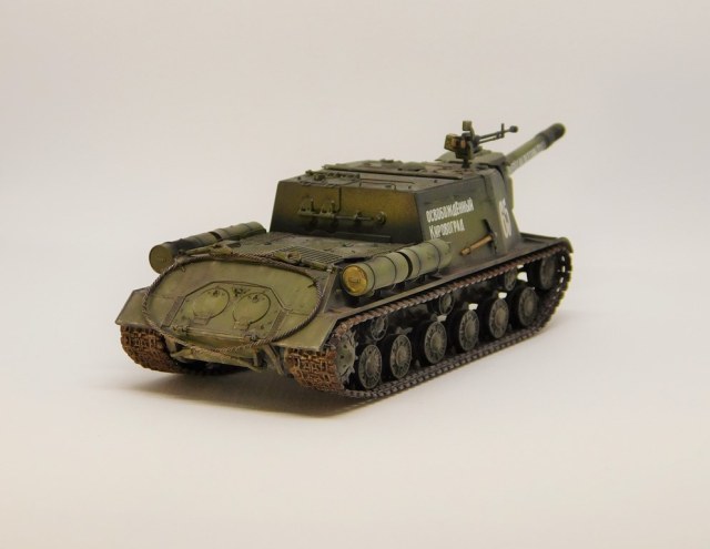Изначально сделал небольшие провисы на гусеницах, но они неким мистическим образом за пол года стояния на полке самоликвидировались :-) Будем считать, что мехвод образцовый, ночью подтянул.