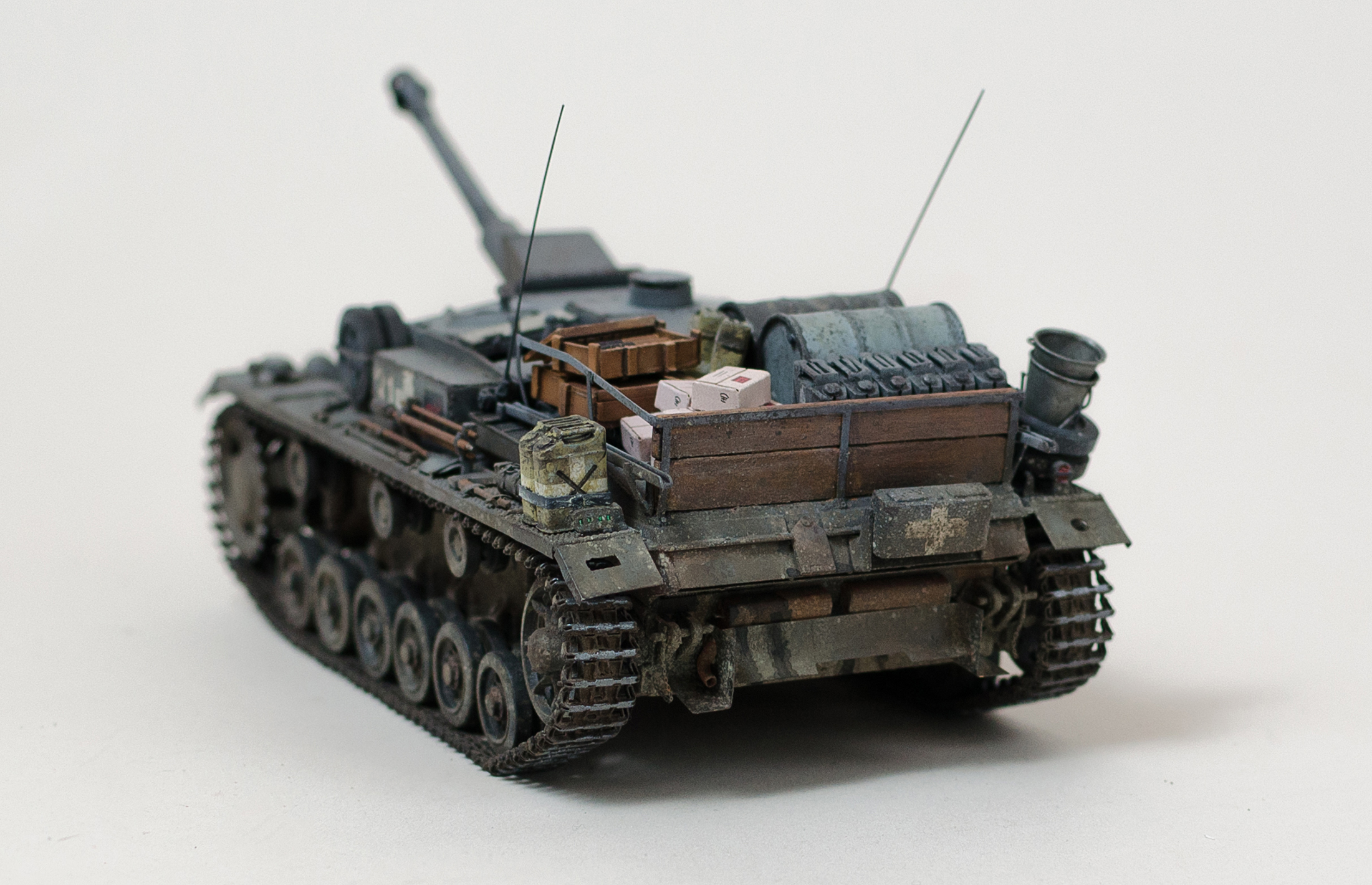 Спасибо за отзыв! В песок решил добавить по ряду причин, некоторые уже описали выше, это неправильно установленные гусеницы, открытый ящик (да и в принципе снаряды не от этого орудия), так же канистры которые не подходят по окраске и щиток на "выхлопных трубах" который стоял уже на G версии и четвертом штуге. Решил что если и идти в БТТ то что бы все было правильно сделано)