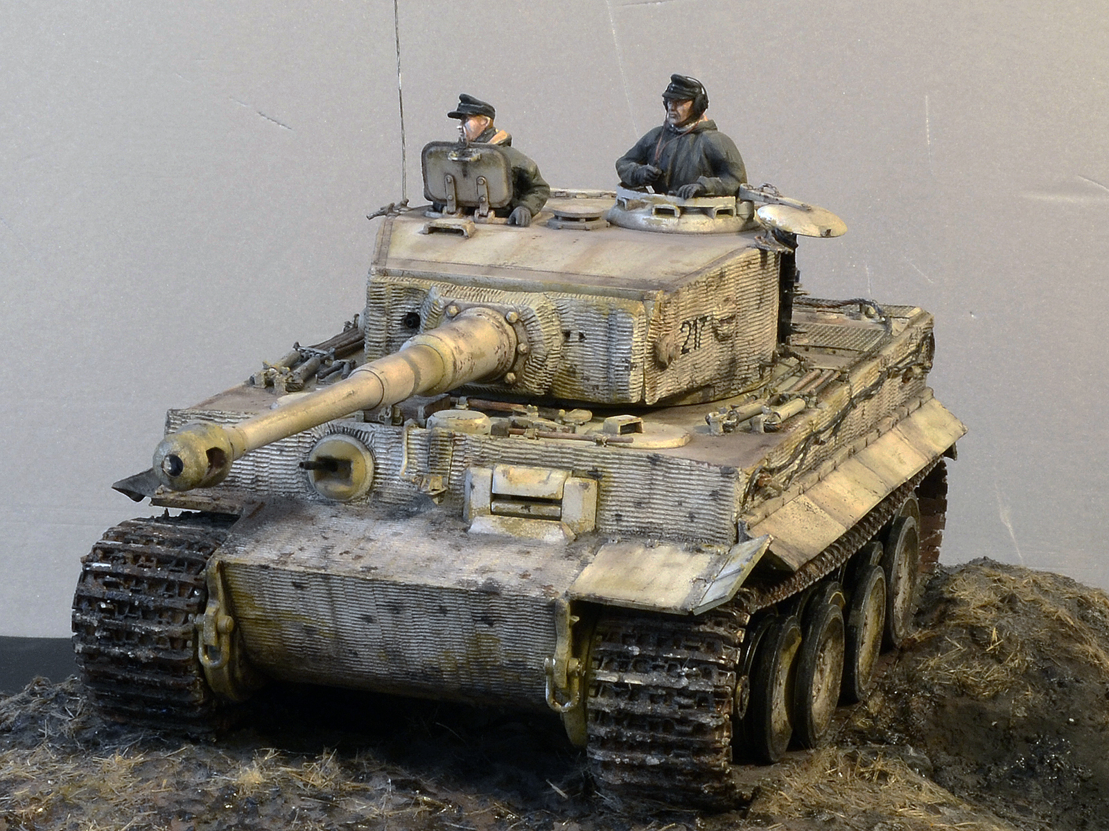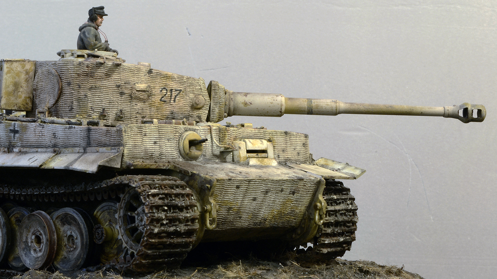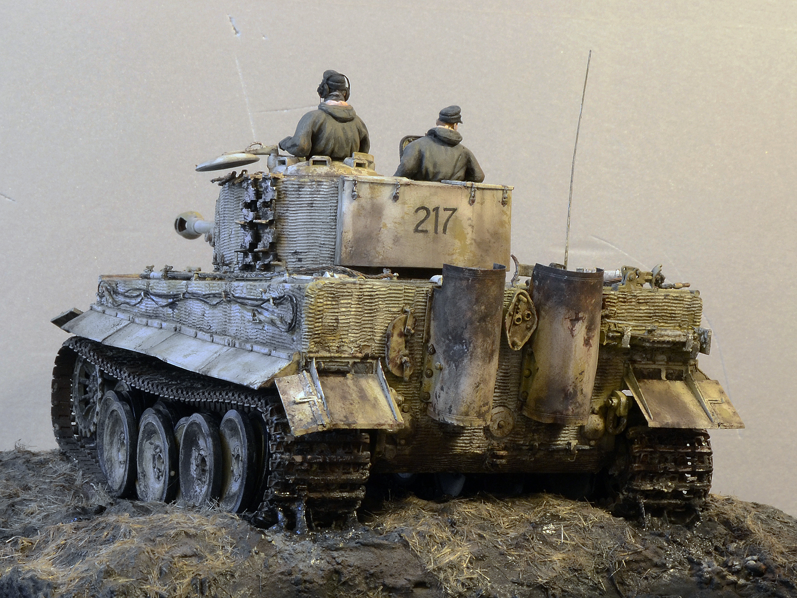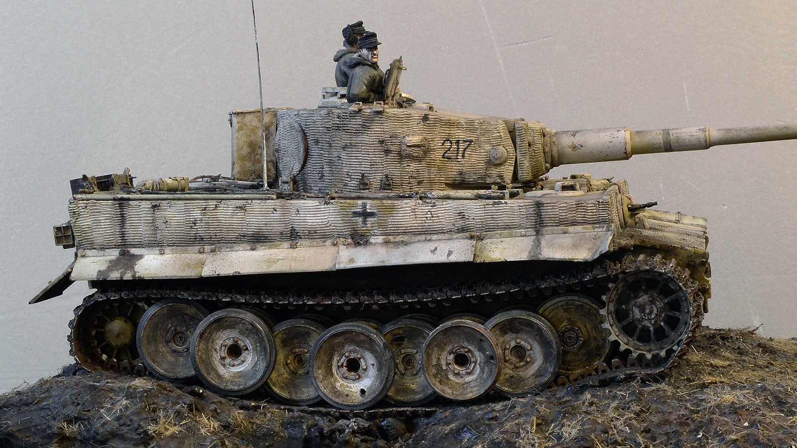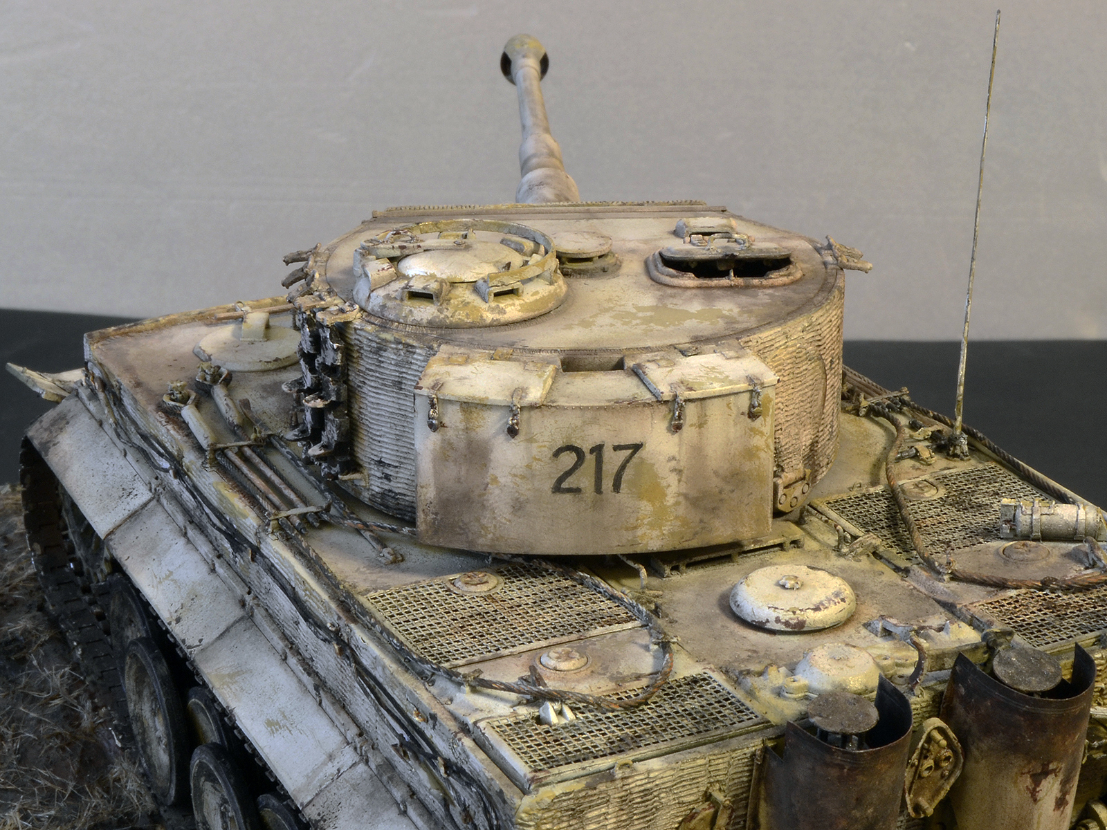 Да здорово смотрится, но циммерит как будто только нанесли равномерно, идеально. Обычно на фото нанесён криво и косо и повсюду сколы осыпания со временем. Даже готовый от драгона более поношен. Я сам не мастер, но может как то гвоздиком танк по циммериту поцарапать, потереть чем нибудь.Можно сделать тогда идеальным.