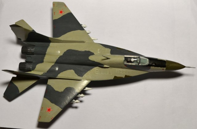 Это "изкоробка", есть лишь небольшие отступления в устройстве внутренностей воздухозаборников - не стал делать их закрытыми, чрез зевы видно грубую имитацию компрессоров, плюс отрезал входа заборников от низа фюзеляжа и закрыл полистиролом, и напоследок обточил штангу ПВД и укоротил на треть.