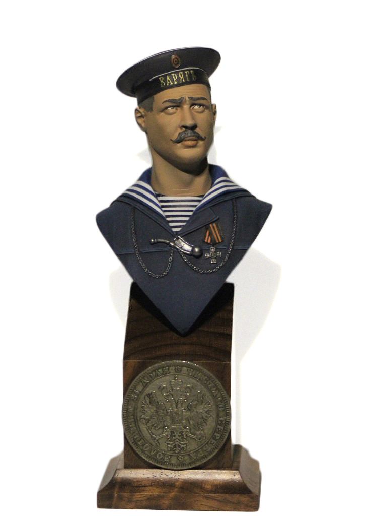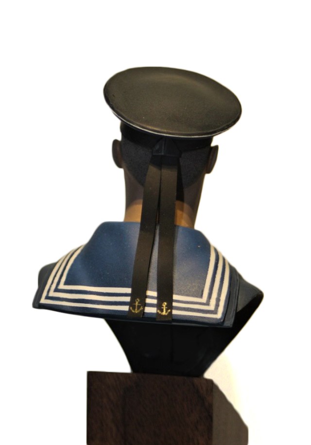 Бюст окрашен акрилом "звезда" и "тамия". Пришлось помучиться с полосами на тельняшке и гюйсе.