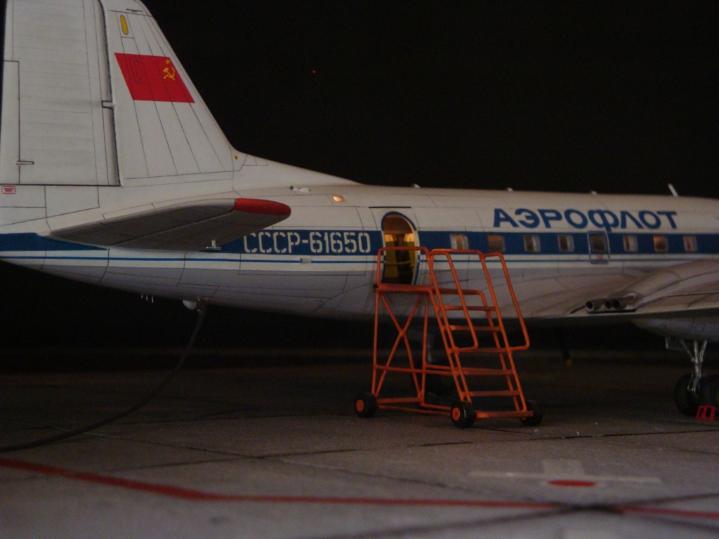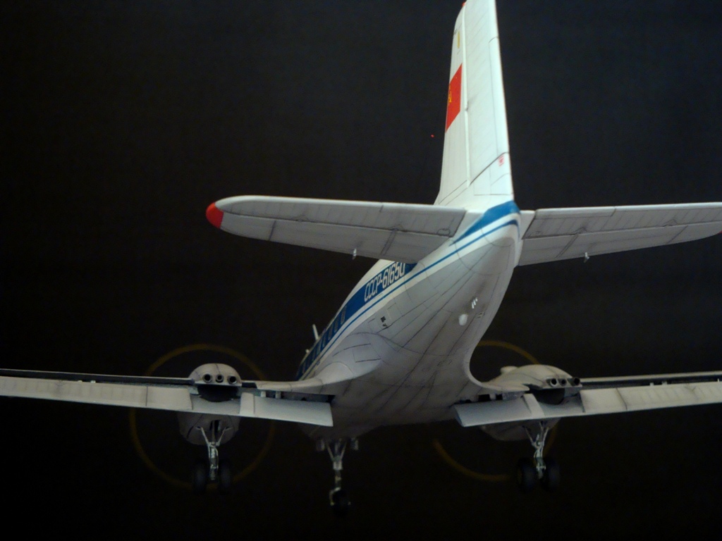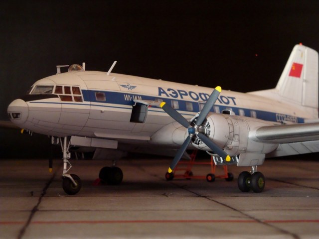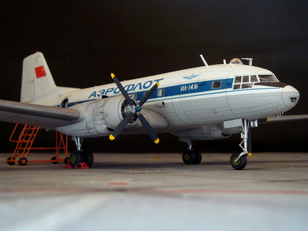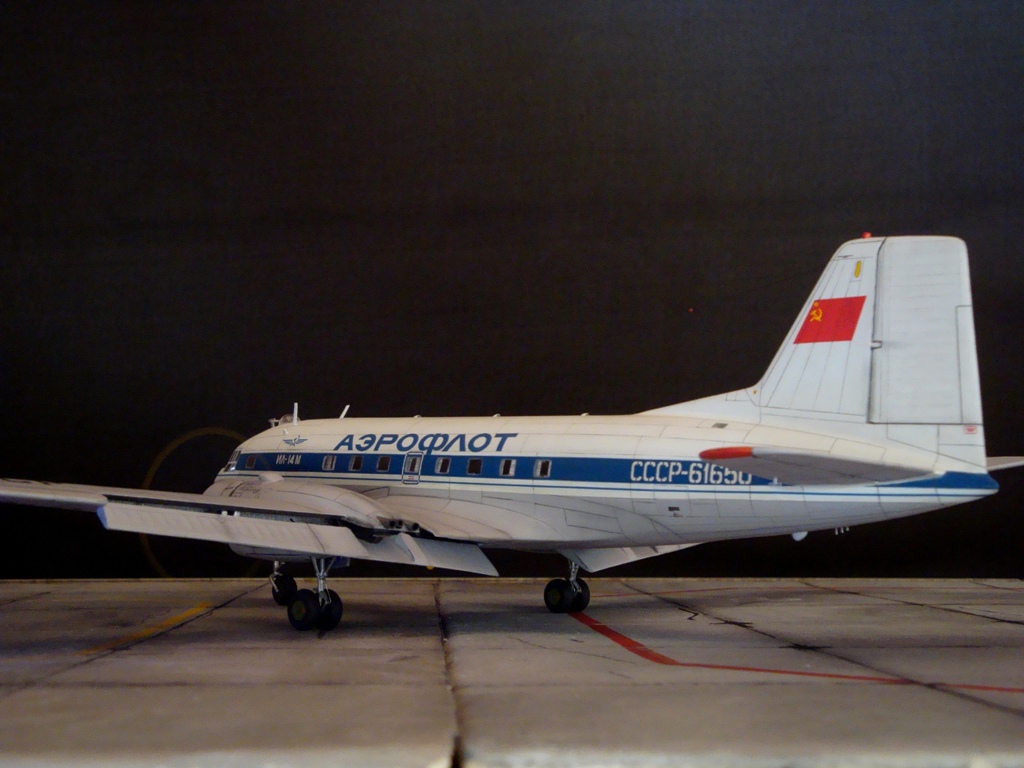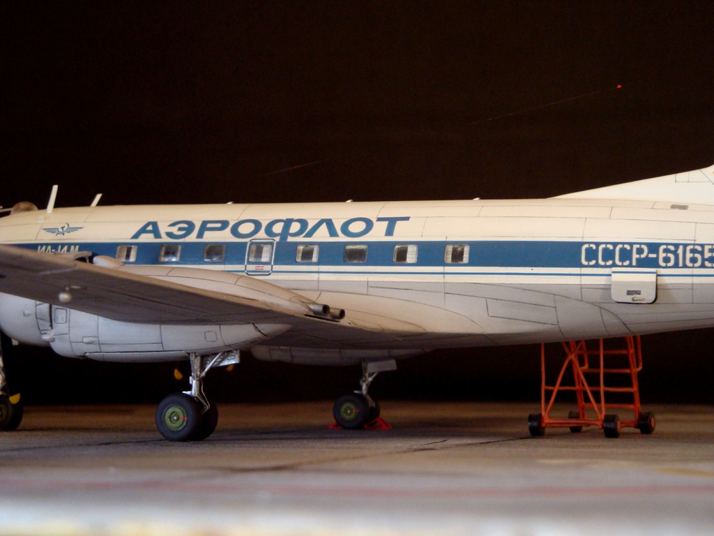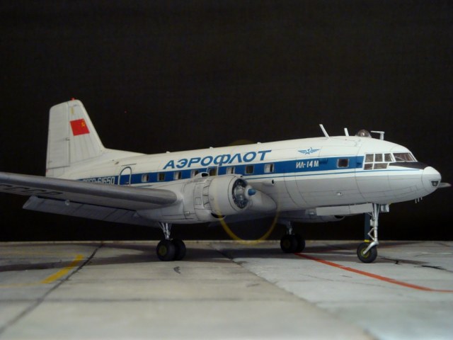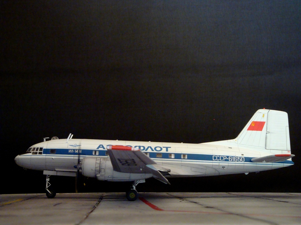Модели у Вас очень здорово получаются. но хочу пару замечаний написать. Это бортовой номер самолета в полярной окраске, и второе, при СССР на Ил-14 на борту никогда не писали модификации будь то М П Г или ФК.
