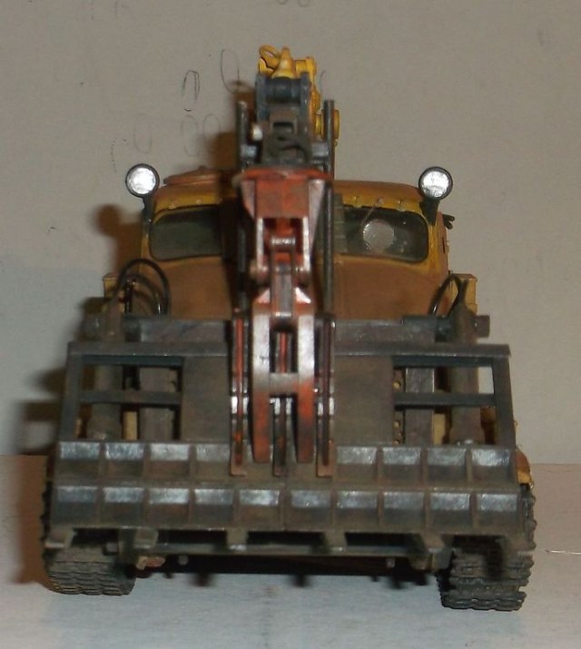Очередная машина из экспедиционного корпуса по повторному освоению Сибири и Дальнего Востока "Ермак". Предназначена для прокладки просек, корчевания пней, уборки стволов деревьев и разбора завалов. Управлялся сей агрегат с помощью двух пультов (патронные ящики), расположенных по обеим сторонам стрелы. Человечек вставал на площадку под удобную ему руку и работал.