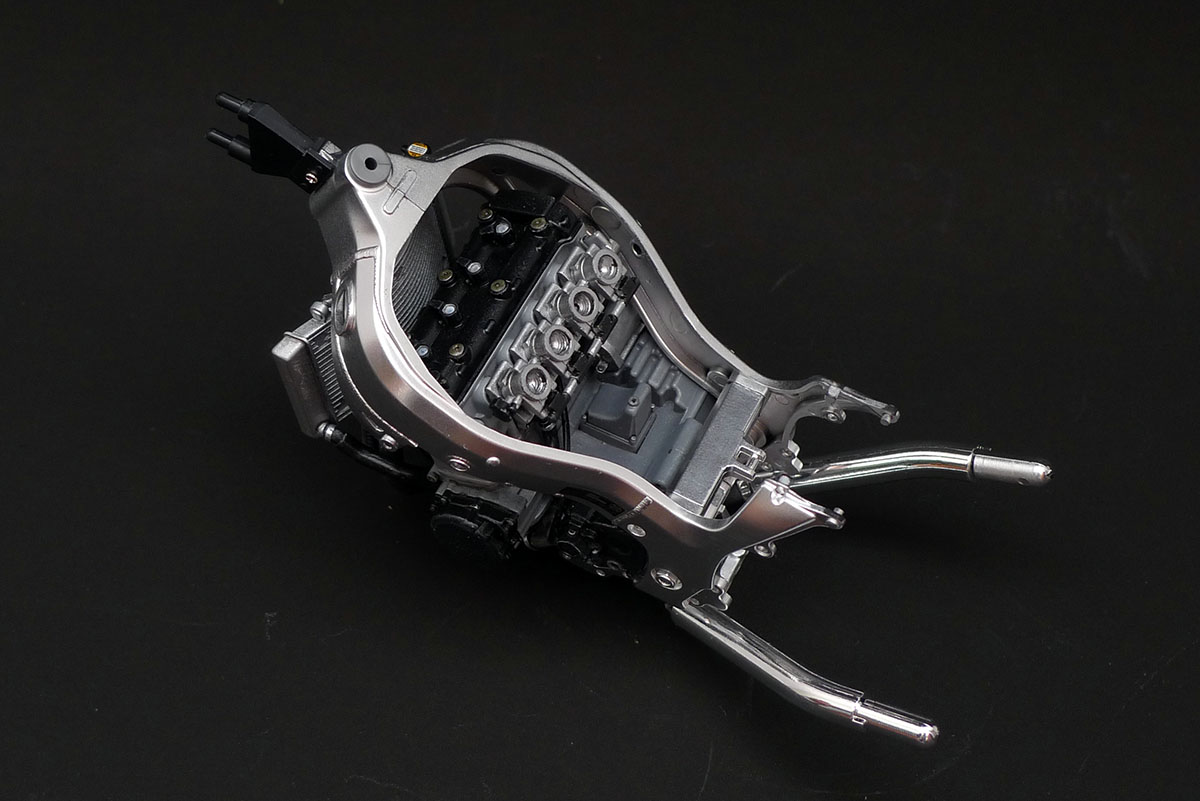 "Пластик" окрашен ТS-ми из инструкции, покрыт 2к лаком, остальное - всем что нашлось на полках. Доработки немногочисленные - трубки, проводка, хомуты на двигателе, сварные швы на маятнике, болты на глушителях.